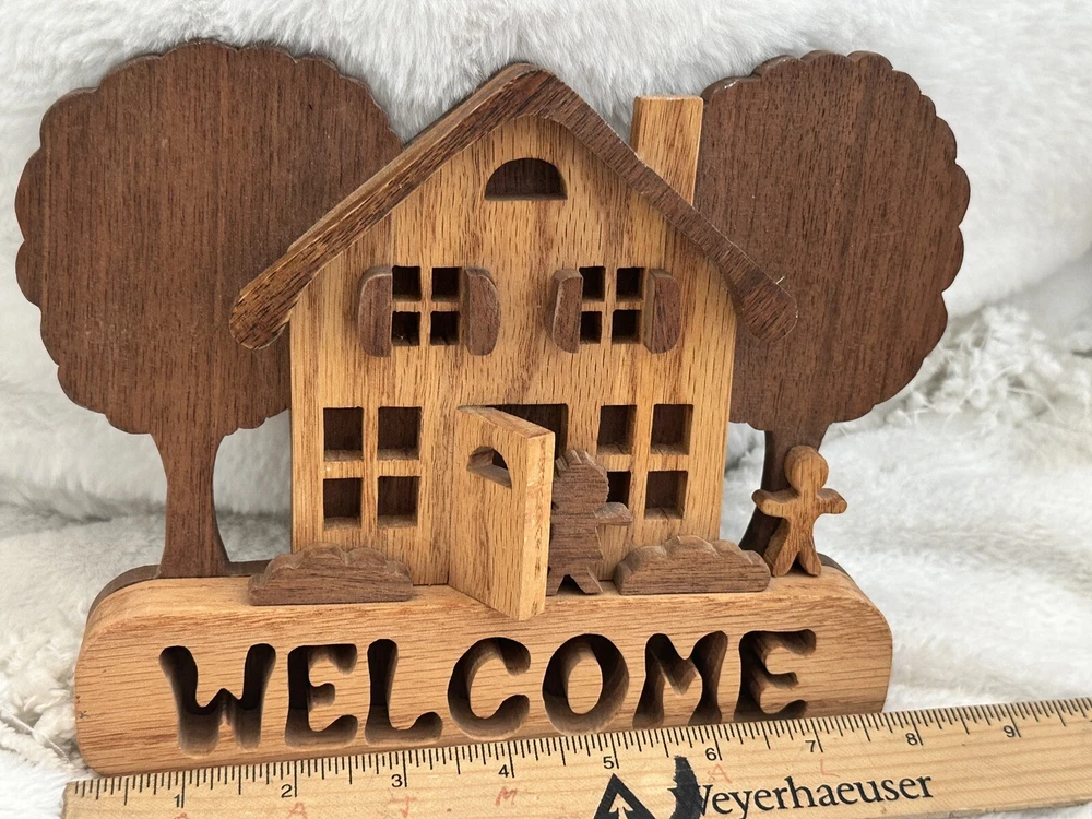 Wooden Welcome sign 1993 signed “BUDS SHOP” Decorate for each holiday like you would your own house and place above a mantle or on a shelf or hang on a wall or from a door it includes a keyhole route.
