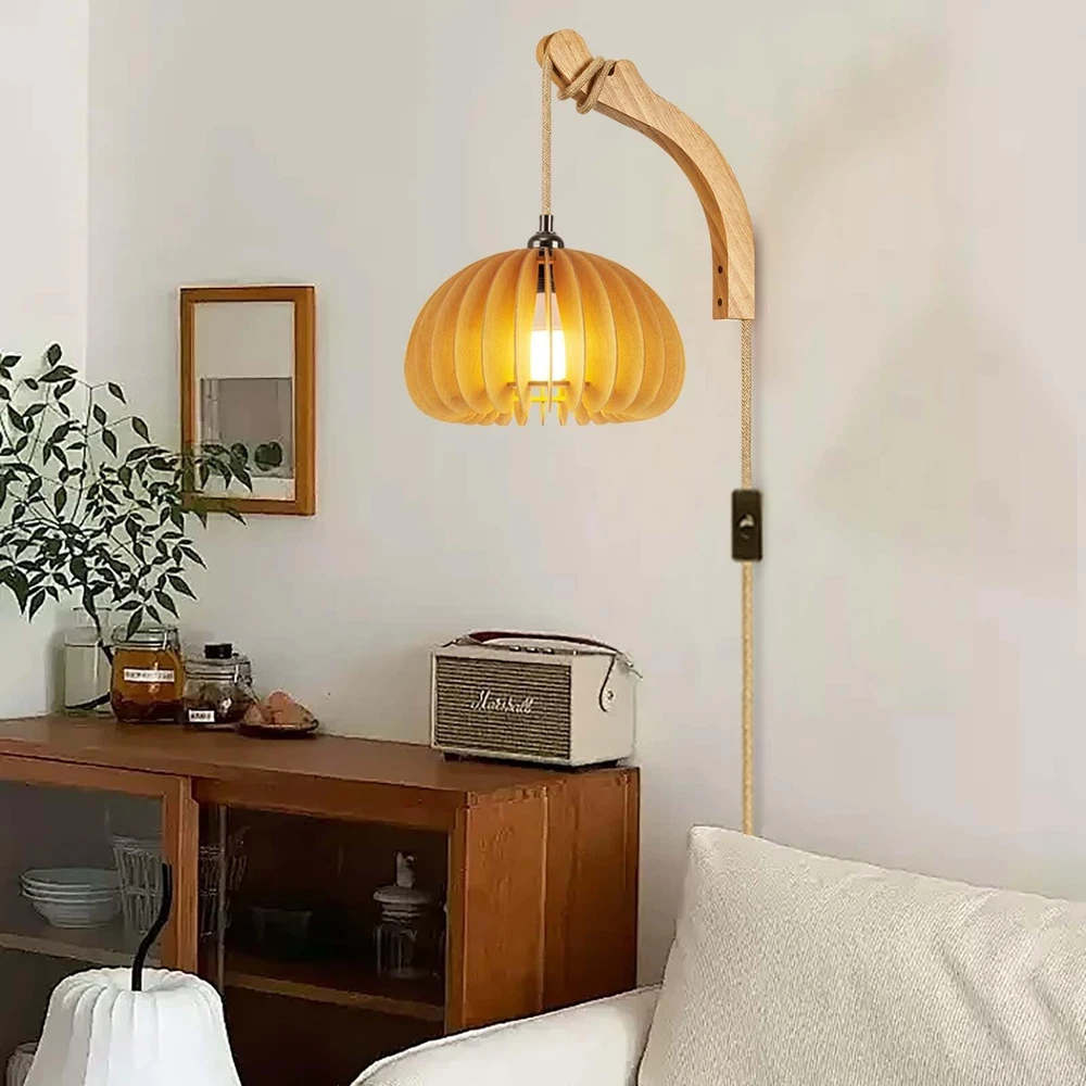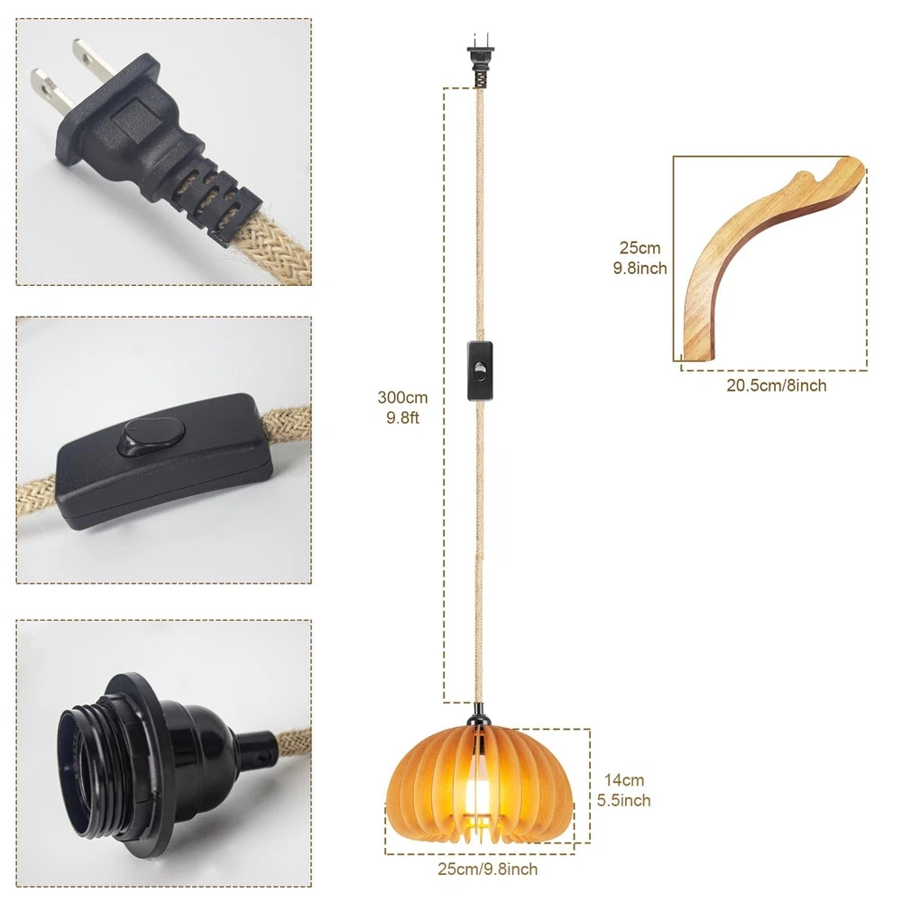 Wood Lantern Plug in Wall Sconces, Wicker Brackets Wall Lamp with Plug in Cord Hand Woven Rattan Bedside Reading Light, Wooden Globe Pumpkin Shade Hemp Rope Hanging Lamp for Living Room Bedroom Product Details Brand: ArcoMead Color: Natural + Reddish Brown Material: Wood, Hemp Rope Style: Modern, Rustic, Farmhouse, Bohemian Light fixture form: Sconce Product Dimensions ‏ : ‎ 9.8 x 9.8 x 5.5 inches; 1.76 Pounds Item model number ‏ : ‎ 1920 Date First Available ‏ : ‎ September 2, 2024 Manufacturer ‏ : ‎ ArcoMead Country of Origin ‏ : ‎ China Customer Reviews: 5.0 5.0 out of 5 stars 2 ratings Brand: ‎ArcoMead Color: ‎Natural + Reddish Brown Material: ‎Wood, Hemp Rope Style: ‎Modern, Rustic, Farmhouse, Bohemian Light fixture form: ‎Sconce Room Type: ‎Kids Room, Kitchen, Bedroom, Living Room, Dining Room Product Dimensions: ‎9.8"L x 9.8"W x 5.5"H Specific Uses For Product: ‎Shop, Home, Walkway Indoor/Outdoor Usage: ‎Indoor Power Source: ‎Corded Electric Installation Type: ‎Pendant Mount Special Feature: ‎Portable, Adjustable Height, Hemp Rope Pendant Lamp with Natural Hand Woven Wood Lampshade, Wood Shelf Brackets, NOT Dimmable, Bulbs NOT included Control Method: ‎Touch Light Source Type: ‎LED Finish Type: ‎Natural Shade Material: ‎Wood Number of Light Sources: ‎1 Voltage: ‎120 Volts (AC) Theme: ‎Space Light Color: ‎warm white Shape: ‎Pumpkin-shaped Included Components: ‎Wooden Globe Pumpkin Shade, Hemp Rope Hanging Lamp, Wicker Brackets, Mounting Hardware, NO Bulb Lighting Method: ‎Downlight Item Weight: ‎1.8 Pounds Number of Items: ‎1 Wattage: ‎60 watts Bulb Base: ‎E26 Switch Type: ‎Push Button Unit Count: ‎1.0 Count Water Resistance Level: ‎Not Water Resistant Efficiency: ‎Moderate Mounting Type: ‎Wall Mount Shade Color: ‎Natural + Reddish Brown Fixture Type: ‎Removable Assembly Required: ‎Yes Manufacturer: ‎ArcoMead Model Name: ‎Lantern Plug in Wall Sconces Wicker Wall Lamp with Plug in Cord Hand Woven Rattan Wall Light Part Number: ‎1920 Item Weight: ‎1.76 pounds Country of Origin: ‎China Item model number: ‎1920 Finish types: ‎Natural Special Features: ‎Portable, Adjustable Height, Hemp Rope Pendant Lamp with Natural Hand Woven Wood Lampshade, Wood Shelf Brackets, NOT Dimmable, Bulbs NOT included Batteries Required?: ‎No Date First Available: September 2, 2024 Handcrafted Wooden Pumpkin Lampshade : --This unique mini-size, handcrafted wooden pumpkin lampshade provides uniform illumination for your room. Its distinctive pumpkin design adds visual interest.This boho wall sconce is high-temperature resistant, anti-aging, and has high light transmission performance. The farmhouse wood holders are solid and each one has been polished for a unique natural wood grain texture. Drawing upon traditional Halloween pumpkin lantern designs, this lampshade infuses a space with warmth and festive ambience with its pumpkin shape. It serves as an ideal holiday decorative lighting fixture, making your space more fun, and adding a childlike joy to kids' lives. Size : --Wooden pumpkin lantern lampshade measures: L9.8 x W9.8 x H5.5 inches. Wood holder size: L9.8 x W8 inches. Hemp rope cord length: 9.8FT(3 m). 110V-120V input voltage. Crafted from Wood, Metal & Wooden Pumpkin for high performance (Bulb not included). DIY 2 in 1 Installation : --This plug-in sconces are designed for simple installation. They can be used as Wall Sconces or Hanging Pendant lamps. The wall light comes with a 9.8ft plug-in cord, allowing easy installation on the wall and plugging into an outlet for power. It also can be hung by installing it on the ceiling. All necessary mounting equipment is included in the package. Bulb Type : --It pairs well with any E26/E27 base bulbs, incandescent , LED, CFL, or halogen bulbs. Create your desired ambiance with light bulbs in different colors or shades.This vintage plug-in wall lamp with a unique look is perfect for your living room, hallway, farmhouse, stairway, kitchen, bedroom, dining room. (Max. 60W, Bulb NOT included)