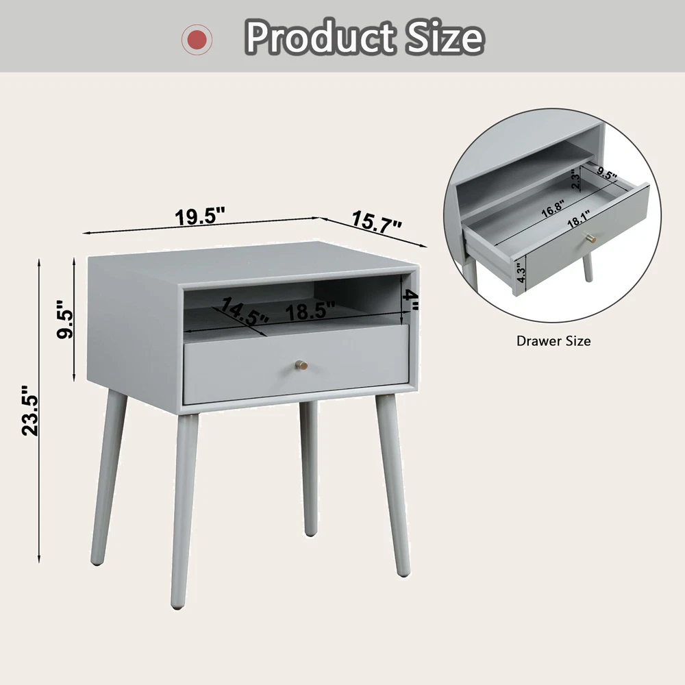 Wooden nightstand that is both stylish and versatile Our mid-century modern design combines functionality with clean lines and geometric shapes, creating a look that is perfect for any modern space. This vintage-inspired nightstand offers minimalist sophistication with its MDF finish, protective coating, waterproof and wear-resistant properties, and easy-to-clean surface. The tapered solid wood legs add a modern touch to the vintage design. The nightstand has a drawer and an open compartment for storage. The flat tabletop can hold items like alarm clocks, books, and table lamps. The modern design is enhanced by metal-finish handles that add a timeless look and provide easy access to personal belongings. This versatile low table can serve as a stylish sofa e... FreezingWarsaw Wood Nightstand with 1 Drawer, Bedside Table with Open Storage Shelf and Solid Wood Legs, Bed Side Table for Bedroom, End Tables for Living Room,Small Side End Table with Storage, Gray Wooden nightstand that is both stylish and versatile Our mid-century modern design combines functionality with clean lines and geometric shapes, creating a look that is perfect for any modern space. This vintage-inspired nightstand offers minimalist sophistication with its MDF finish, protective coating, waterproof and wear-resistant properties, and easy-to-clean surface. The tapered solid wood legs add a modern touch to the vintage design. The nightstand has a drawer and an open compartment for storage. The flat tabletop can hold items like alarm clocks, books, and table lamps. The modern design is enhanced by metal-finish handles that add a timeless look and provide easy access to personal belongings. This versatile low table can serve as a stylish sofa end table, a decorative perch in your entryway, or a wooden nightstand with ample bedside storage. It comes in classic walnut and grey colours, making it a perfect complement to any interior. Smooth tabletop The table tops with protective finish are smooth, waterproof, hard-wearing, and easy to clean. They are also suitable for placing vases, precious family photos, or beautiful table lamps. Large-capacity drawers The drawers have solid wood slides that run smoothly and quietly. And a large-capacity drawer and open shelf provide plenty of storage space. Delicate metal pulls The opening of drawers is made easier with the use of delicate metal pulls, allowing for convenient access to items. Tapered solid wood legs The solid wood legs are tapered, providing sturdy and stable support. Additionally, the non-slip feet protect floors from scratches and minimize noise when moving. Product information Product Dimensions 19.5"L*15.7"W*23.5"H Material Rubber wood+MDF Color Gray Number Of Pieces 1 Assembly required Yes,easy Modern Multifunctional Nightstand: This modern multifunctional nightstand features a stylish design and classic colour that can easily integrate into any home decor. It can be used as a narrow side table next to the sofa, a bedside table in the bedroom, or a storage cabinet in the flat. It creates a simple, comfortable, and elegant home atmosphere. Functional Storage: The nightstand provides ample storage with a drawer and an open compartment for easy access to your belongings. It is suitable for storing your favourite books, alarm clock, mobile phone, and other items. Delicate metal-finish handles allow for easy drawer access. The table top is perfect for displaying vases, family photos, or table lamps to create a cosy personal space. Our end-of-bed tables help you create a sophisticated and tidy home. High Quality Materials: The end table is made of eco-friendly rubber wood and high quality MDF to ensure durability. Its surface is scratch-resistant and wear-resistant, the wooden surface is very easy to maintain and clean, just wipe it with a damp cloth. Sturdy and Durable: Our nightstands combine hardwood with advanced technology. They feature solid wood legs and reinforced seams. The feet are securely placed at an inclined angle to prevent rocking. They offer excellent durability and stability. Additionally, non-slip feet protect floors from scratches and minimise noise when moving. Dimensions and Assemble: This wooden nightstand size: 19.5 "L*15.7 "W*23.5 "H. All required accessories are included, you can follow the clear and easy-to-follow instructions to assemble it effortlessly in no time. Item Specifics Brand Unbranded Type Furniture Parts Item Length 19.5 Item Width 15.7 Item Height 23.5 Weight 24.2 Color Gray Material Rubber Wood Payment If you do not have a PayPal account, to get started and buy your first item with us is very easy. Simply click on the 'Buy It Now' button and follow the eBay checkout steps. Select PayPal as the payment method you then will be given the chance to enter your card details in to PayPal's secure checkout in order to pay for your order. Shipping 1. Your purchase is shipped directly to you as soon as we have received your cleared payment. 2. Normally all of parcels would be shipped within 3days(From Monday to Saturday). 3. We will send information on eBay or email if the parcel was delayed due to our holiday. 4. We provide three kinds of shipping for choice. Shipping way depend on delivery address. Returns If an unit is received defective, of course we take it back or replace it. If the unit is received as expected, we must charge for our expenses if you want to send it back. We have to charge for the work of handling, retesting and restocking. Contact Us Dear buyer, Thank you for visiting my store! Our warehouses are located in many regions around the United States. According to the customer's delivery address. Use USPS/UPS/DHL logistics transportation service. Prioritize the best quality logistics solutions to transport packages. Ensure package delivery time, At the same time. Have any after-sales problems, Feel free to contact us. At your service FreezingWarsaw DESCRIPTION PAYMENT SHIPPING RETURN POLICY CONTACT US Wood Nightstand with 1