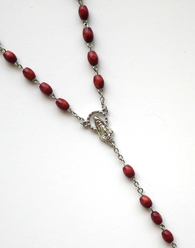 SIZE/LENGTH: Total length is 17" (28" circumference) including the Crucifix. BEADS: Wood beads are oval and measure 6x8 mm. CENTER: Zinc alloy with the image of The Miraculous CRUCIFIX: Zinc alloy crucifix is 1-5/8" H x 7/8" W COLOR: Maroon It can be used as necklace rosary. This rosary comes with a FREE beautiful velveteen pouch. This is a very economic, good quality and elegant rosary. To prevent from getting damaged it's a good idea to preserve your rosary to put it in case or any container when not being used. Come Visit Us at Our New Store! Please feel free to email me with questions about this item. Also please check my other listings. I am always available to answer your questions promptly. Buy from us with confidence.