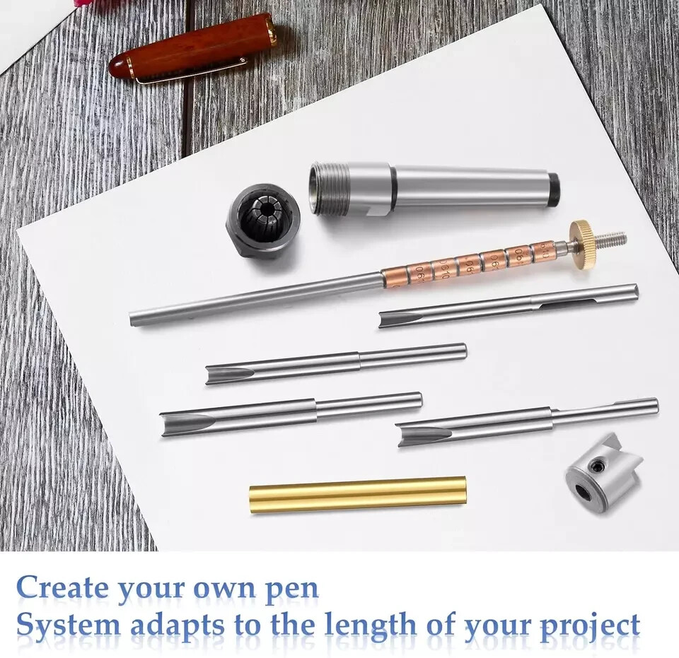 This pen-making kit is a game-changer for woodturners! The mandrel and trimming set work flawlessly, making barrel adjustments quick and precise. The multiple cutter shafts fit various pen sizes, and the sturdy build ensures smooth operation. Perfect for beginners and pros alike—great value for the price!