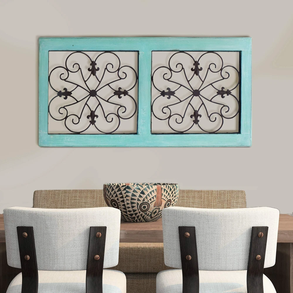 A perfect alternative when it comes to paintings or wall-hanging pictures, this wooden and metal wall panel features a rustic look that makes it a must have. Flaunting fine attention to details, this wall panel showcases a combination of pistachio green and brown, which adds to the aesthetic appeal. The durable wood and high quality metal used in the manufacture ensures long lasting performance, making it an excellent addition to your home decor. Resilient and long-lasting, this wall panel will not only look good on your own walls but will also serve well as a house-warming gift. It comes with a dimension of 31 inch H x 16 inch W x 1 inch d. Excellent addition to your home decor Long lasting performance Dimension of 31H x 16W x 1D