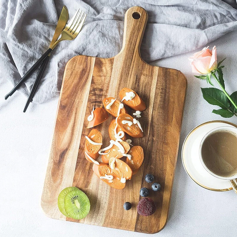 Wood Tray Board With Handle For Cutting Chopping Food Cheese Bread Fruit Plates