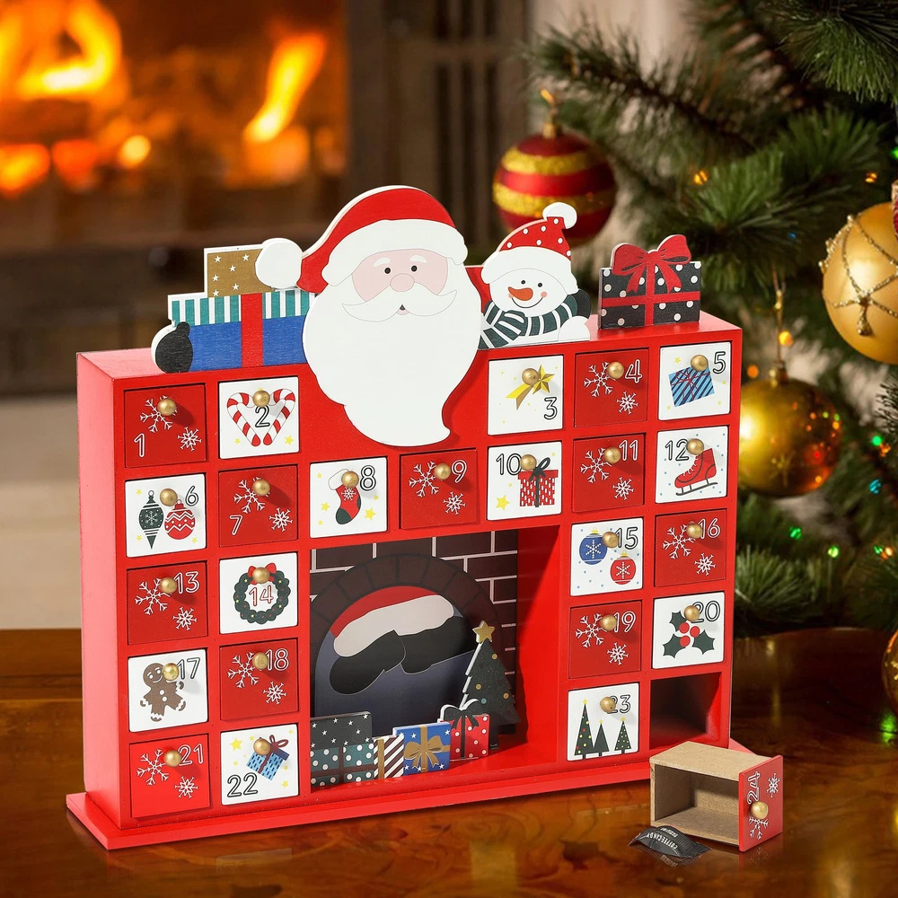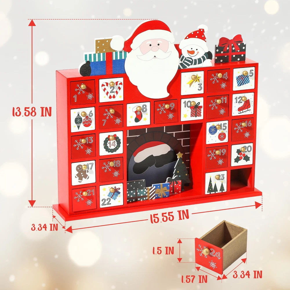 24 SURPRISE DRAWERS: With 24 drawers, this diy advent calendar is perfect for storing small gifts, chocolates, and sweets. Surprise your children or family with a little treat each day as Christmas approaches DURABLE WOOD CONSTRUCTION: Made from sturdy wood, this reusable advent calendar can be reused year after year. Advent calendar for kids's stable base ensures it stays beautifully on any surface, making advent calendar boxes a perfect addition to your living room or bedroom. Dimension: 15.55”×13.58”×3.34”, Drawer: 1.57”×1.49”×2.28” FIREPLACE EXTERIOR DESIGN: Advent calendar with drawers features a cozy fireplace designed with Santa Claus, snowmen, Christmas gifts, and trees, creating a warm, festive atmosphere HAPPY 24-DAY COUNTDOWN: Make counting down to Christmas a joyful experience! From December 1st to December 24th, look forward to family reunions with this empty advent calendar. Featuring clear numbers from 1 to 24 and charming Christmas elements like Santa Claus and Reindeer on the drawers, refillable advent calendar helps children enhance their number and color recognition skills IDEAL CHRISTMAS GIFT: Decorated with a classic Christmas theme, is a great addition to any room—whether it’s the living room, bedroom, study, or office. Kids advent calendars’s sure to attract attention and praise. And after Christmas, beauty advent calendar 2024’s perfect for storing small jewelry or accessories
