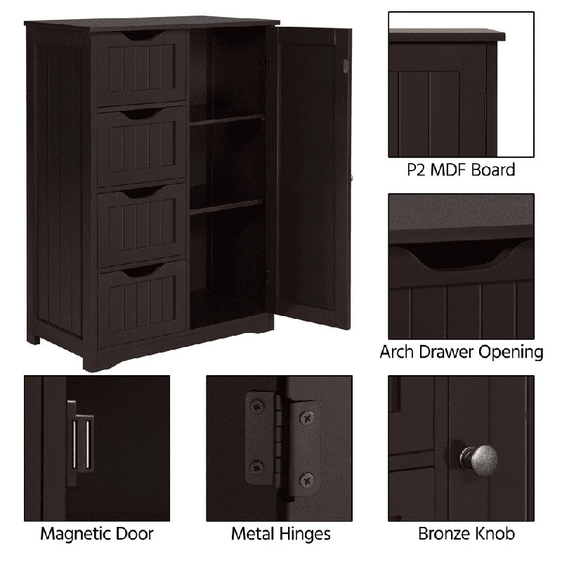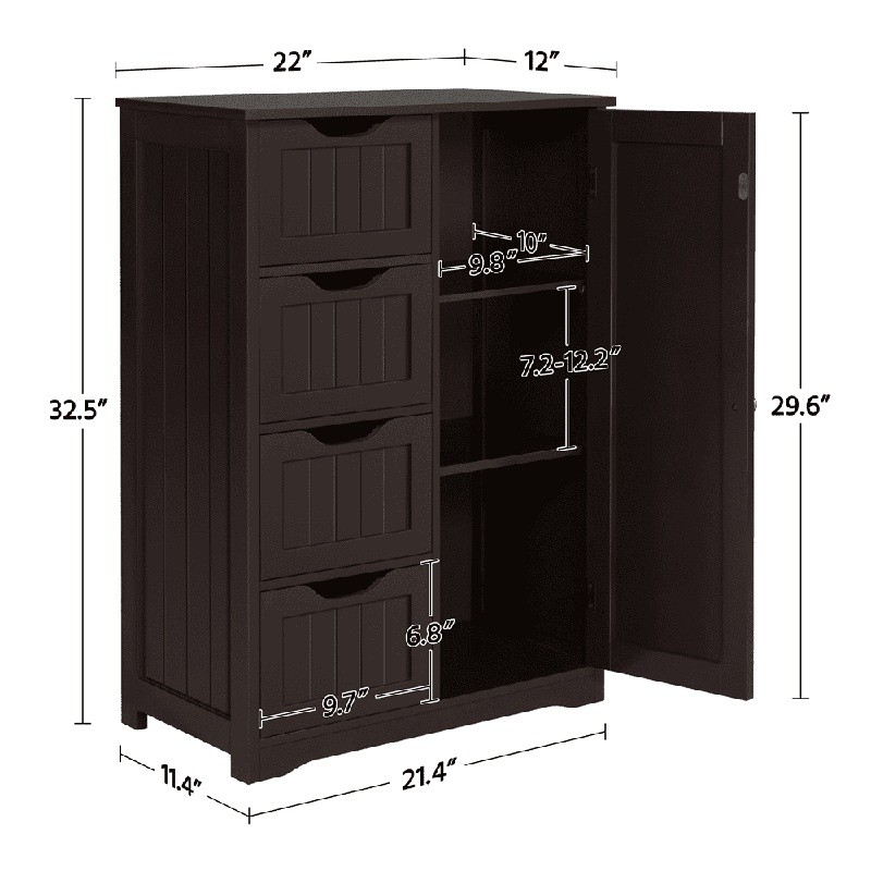 You may also like Modern Accent Cabinet W/ Glass Doors Adjustable Shelf Storage Utility Furniture 127.22 USD 133.92 USD Free shipping 5% off Mid-Century Open Display Shelves Storage Cabinet Wooden Legs Indoor Organizer US 83.17 USD 87.55 USD Free shipping 5% off Storage Cabinet 2-Door Adjustable Shelf Multi-Functional Durable Living Room NEW 142.49 USD 149.99 USD Free shipping 5% off Bathroom Storages Wall Cabinet W/ 1 Open Shelf & 2 Interior Shelves Gray 2-Door 81.64 USD 85.94 USD Free shipping 5% off Elite Storage Cabinet Adjustable Shelf Drawer Bathroom Kitchen Garage Organizer 156.43 USD 164.66 USD Free shipping 5% off 2-Door Storage Cabinet Freestanding Utility Adjustable Shelves Home Organization 195.93 USD 206.24 USD Free shipping 5% off Tall Kitchen Cabinet W/ Drawer Open Shelves Storage Microwave Utensils Black New 143.36 USD 150.91 USD Free shipping 5% off Freestanding Tall Storage Cabinet W/ Adjustable Shelves Garage Kitchen Organizer 211.37 USD 222.49 USD Free shipping 5% off Tall Cupboard Kitchen Pantry Storage Cabinet Buffet Hutch Microwave Stand Drawer 126.22 USD 132.86 USD Free shipping 5% off Wall Cabinet Wood Bathroom Over The Toilet Space Saver Shelving Storage Cabinet 66.25 USD 69.74 USD Free shipping 5% off Floor Storage Cabinet W/ Drawer Single Shutter Door Living Room Bathroom Wooden 56.99 USD 59.99 USD Free shipping 5% off 2 Door Modular Cabinet Storage Chests Displaying Organizer Office Living Room US 42.56 USD 44.8 USD Free shipping 5% off This free-standing cabinet is built in a solid structure with high load capacity and can meet all of your basic storage requirements. Made with high-quality materials, this wooden bathroom storage cabinet can withstand the humidity and prevent moisture, specifically designed to for humid areas such as your bathroom or kitchen. Four drawers with cutout handles and one cupboard with a customizable shelf for you to organize different items like cosmetics, toiletries, towels and toilet paper. A great option for tucking away bathroom clutter. The addition of this bathroom storage cabinet can elevate any bathroom or room! Wooden Bathroom Storage Cabinet with 4 Drawers & Cupboard, Espresso Material: P2 MDF Overall dimension: 22"L x 12"W x 32"H Drawer interior size: 8. 9"L x 9. 7"W x 3. 9"D Shelf size: 10. 1"L x 10. 1"W Adjustable distance between shelves: 6. 4"; 8. 9"; 11. 5" G. W. : 38. 2 lb. Max. weight capacity on tabletop: 99 lb. Max. weight capacity in each drawer: 11 lb. Max. weight capacity on each shelf: 33 lb. Easy assembly: instruction manual and all necessary tools and hardware included You may also like 16 oz Crystal Lye Drain Opener Fast Acting Pure Lye Clog Remover Soap Making New 6.36 USD 6.7 USD Free shipping 5% off 16" Indoor Oscillating Pedestal Fan Adjustable Portable Cooling Tilt-back Office 33.31 USD 35.06 USD Free shipping 5% off High Velocity Dual Speed Retro Metal Drum Fan Portable Quiet Cooling Fan New 32.84 USD 34.57 USD Free shipping 5% off 11" X 4" 5 Flat Free Lawn Mower Tire Wheel Set Zero Turn Smooth Tread 2 Pack New 78.02 USD 82.13 USD Free shipping 5% off Fast Acting Drain Cleaner 32oz Acid Clog Remover Sink Opener Septic Safe New 18.22 USD 19.18 USD Free shipping 5% off 128oz Concentrated Lavender Scented Multi Purpose Cleaner US Household Degreaser 8.71 USD 9.17 USD Free shipping 5% off New 21 Gallon Unscented Drawstring Trash Bags 45 Pack Puncture Tear Resistant 12.99 USD 13.67 USD Free shipping 5% off 32oz Fast Acting Drain Cleaner Acid Sink Opener Clog Remover Septic Safe New 18.22 USD 19.18 USD Free shipping 5% off Portable Lightweight Camping Chair w/Cup Holder for Folding Lawn Picnic US 14.68 USD 15.45 USD Free shipping 5% off 12ft Medium Heavy Spinning Fishing Rod 2 Piece Durable Tubular Glass Design New 46.32 USD 48.76 USD Free shipping 5% off Universal Lawn Mower Tire & Wheel Assembly 11" X 4" 5 2 Pack Heavy Duty Quality 72.13 USD 75.93 USD Free shipping 5% off Plug In Air Freshener Refill Odor Control Vanilla Suede 50 Days Fresh 0.87 fl oz 10.15 USD 10.68 USD Free shipping 5% off