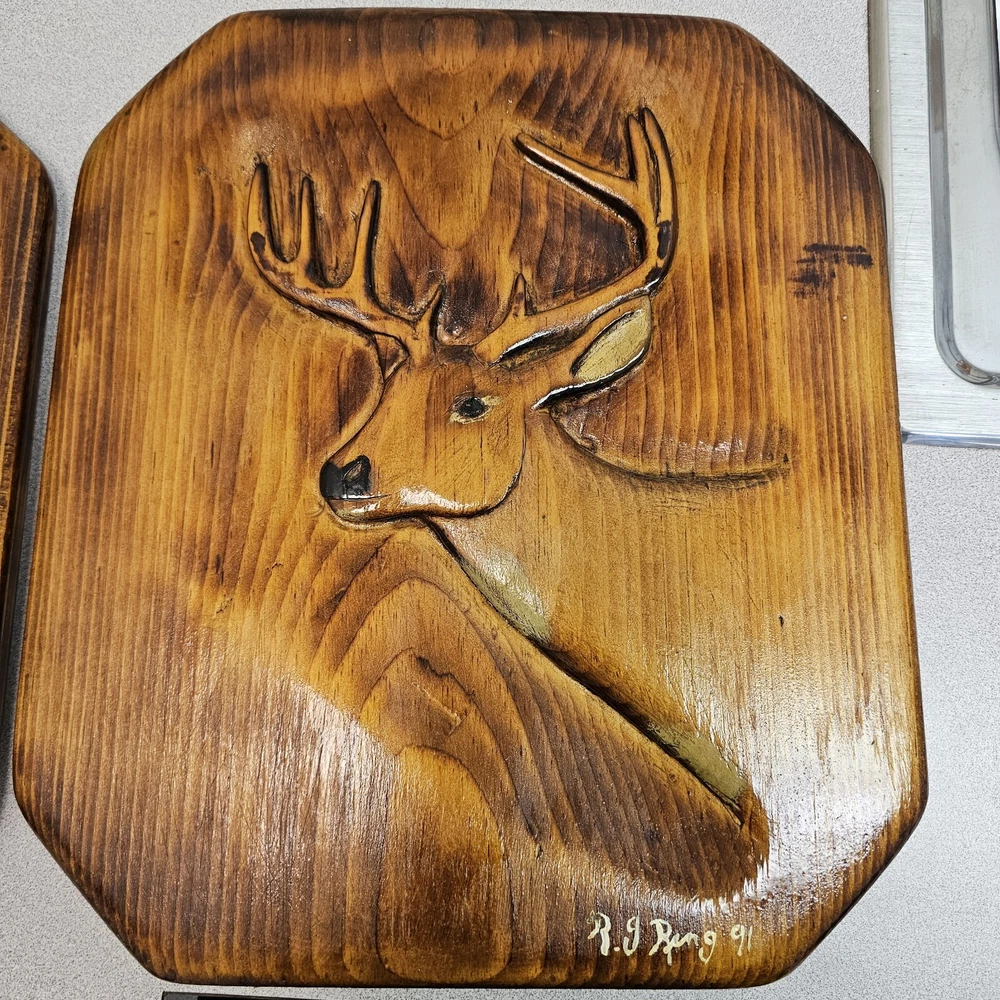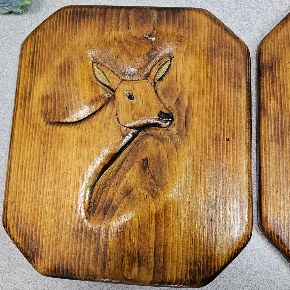 Add a touch of nature to your home decor with these beautiful wooden buck and doe wall decorations. The square medium size and brown color make them perfect for any room. The glossy finish and carvings give them a rustic/primitive style that will complement any theme, whether it's animals, art, country and western, or America. Made of high-quality wood, these decorations are durable and ready to hang. They feature a 3D effect and etched details that make them look even more stunning. The buck and doe are the perfect addition to your home decor, and they will surely impress your guests.