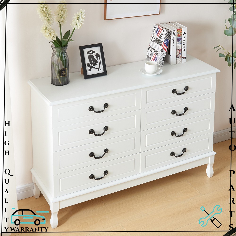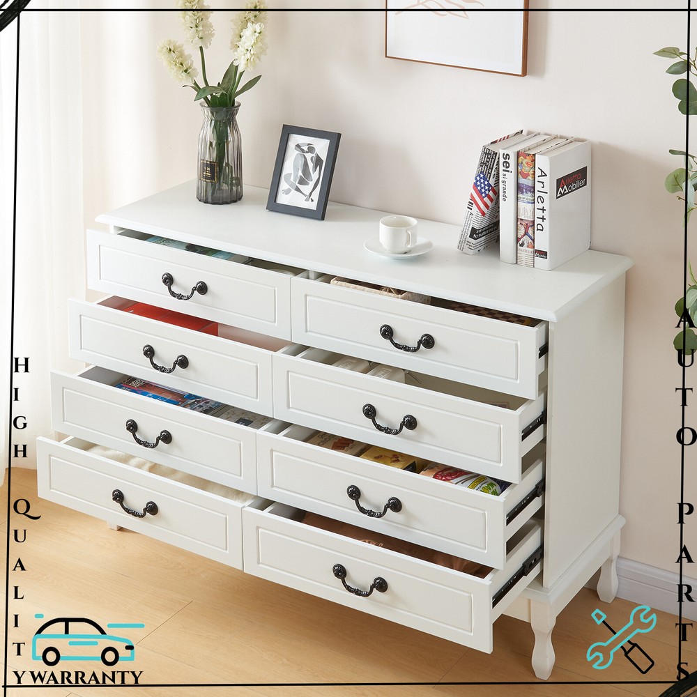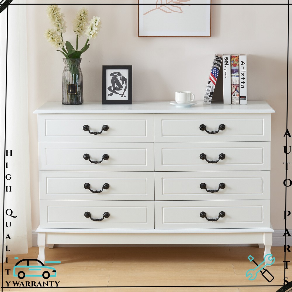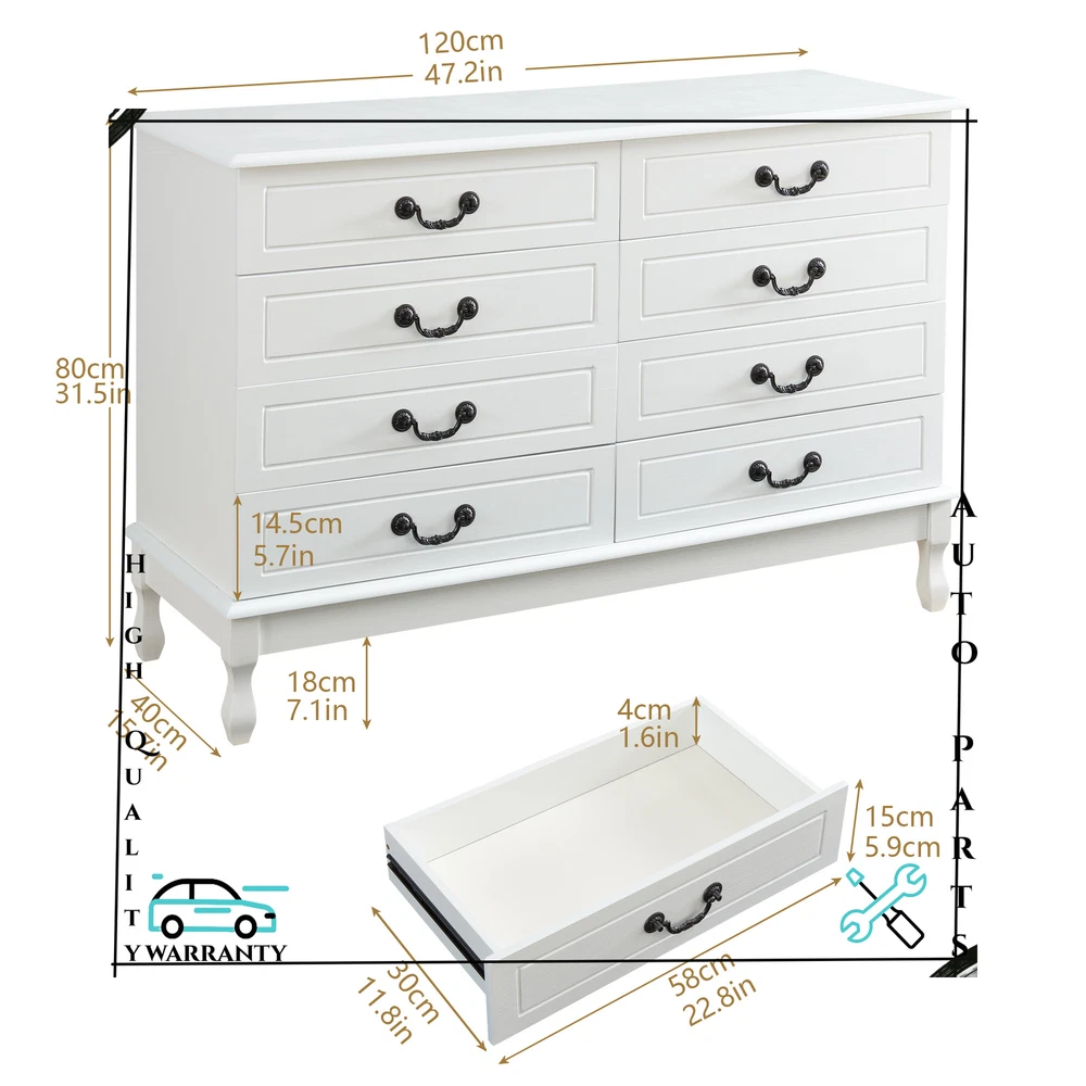 Features: [Fashionable appearance]: This innovatively designed multifunctional with black handle drawer storage cabinet has an elegant white finish, which perfectly matches your home furnishings. [8 drawer storage space]: The white drawer's 8 drawers are very suitable for storing daily necessities. The spacious space can store your belongings and keep your home tidy. [Top storage space]: Put some albums, collectibles and decorations on the top of the white cabinet, which will become a beautiful scenery in your home. [Smooth slide rails]: The drawers of this bedside table use smooth slide rails, which can easily push in and pull out 8 drawers. [Smooth surface]: The surface is spray-painted, so that the surface of this dressing table can be easily cleaned without water, and it can be used for a long time by keeping it dry. [Safety and fall prevention]: The fall prevention device can protect you and your family. The cabinet will be very stable and safe to use. Specification: Color: White Material: Wood Overall size: 120 x 40 x 80 cm / 47.2 x 15.7 x 31.5 inch Drawer size: 58 x 30 cm / 22.8 x 11.8 inch Package Contents: 1 x 8-drawer white storage cabinet 1 x Accessory 1 x Instruction If you have any problem towards the order you received,please feel free to contct us,we promise will serve you and give you a satisfying solution.