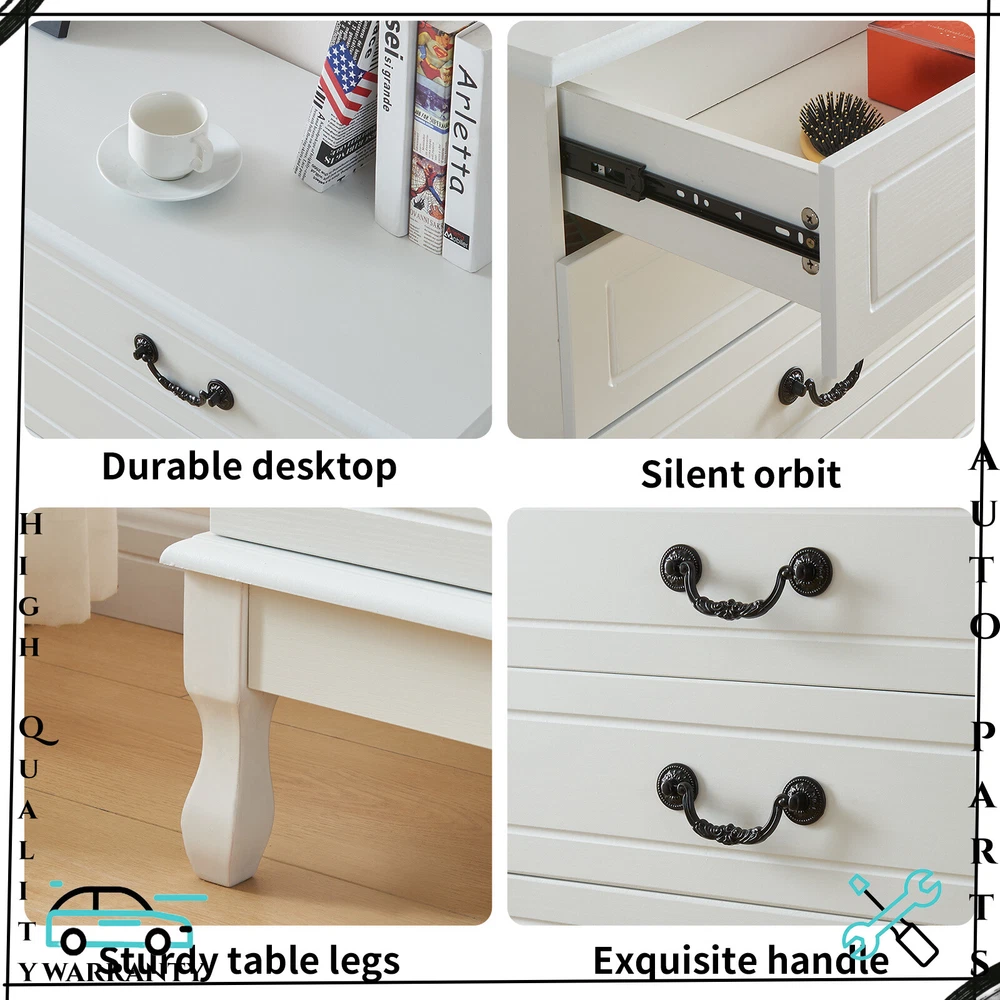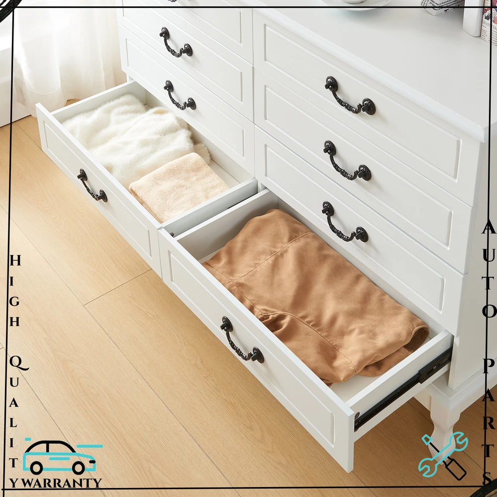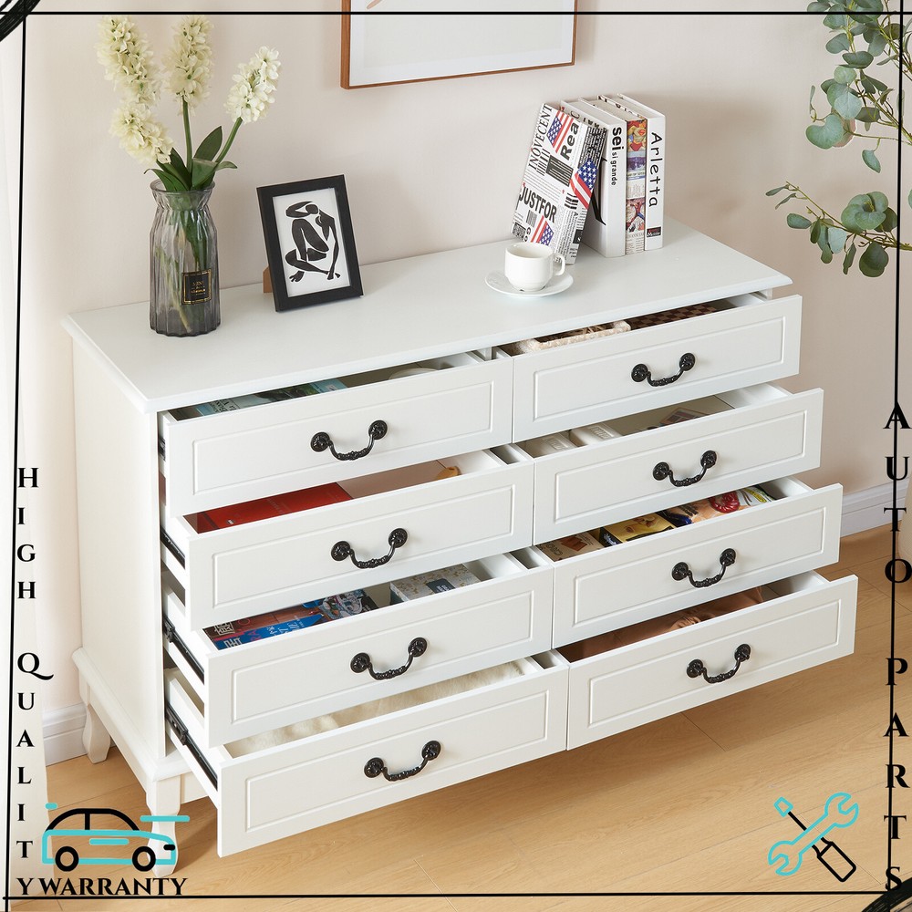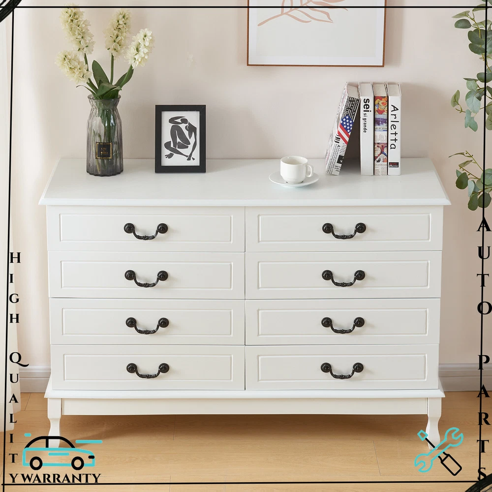 Features: [Fashionable appearance]: This innovatively designed multifunctional with black handle drawer storage cabinet has an elegant white finish, which perfectly matches your home furnishings. [8 drawer storage space]: The white drawer's 8 drawers are very suitable for storing daily necessities. The spacious space can store your belongings and keep your home tidy. [Top storage space]: Put some albums, collectibles and decorations on the top of the white cabinet, which will become a beautiful scenery in your home. [Smooth slide rails]: The drawers of this bedside table use smooth slide rails, which can easily push in and pull out 8 drawers. [Smooth surface]: The surface is spray-painted, so that the surface of this dressing table can be easily cleaned without water, and it can be used for a long time by keeping it dry. [Safety and fall prevention]: The fall prevention device can protect you and your family. The cabinet will be very stable and safe to use. Specification: Color: White Material: Wood Overall size: 120 x 40 x 80 cm / 47.2 x 15.7 x 31.5 inch Drawer size: 58 x 30 cm / 22.8 x 11.8 inch Package Contents: 1 x 8-drawer white storage cabinet 1 x Accessory 1 x Instruction If you have any problem towards the order you received,please feel free to contct us,we promise will serve you and give you a satisfying solution.