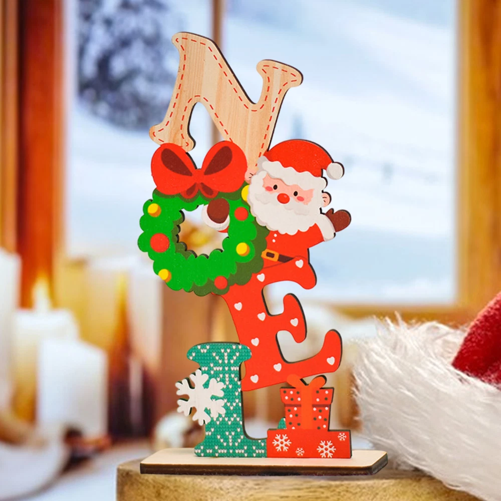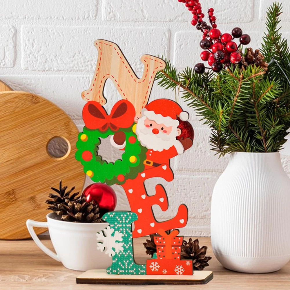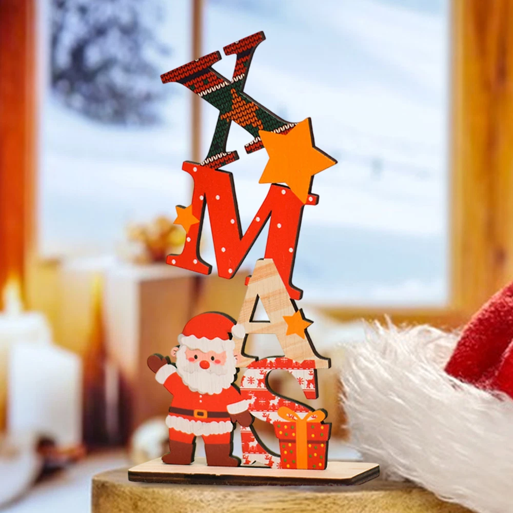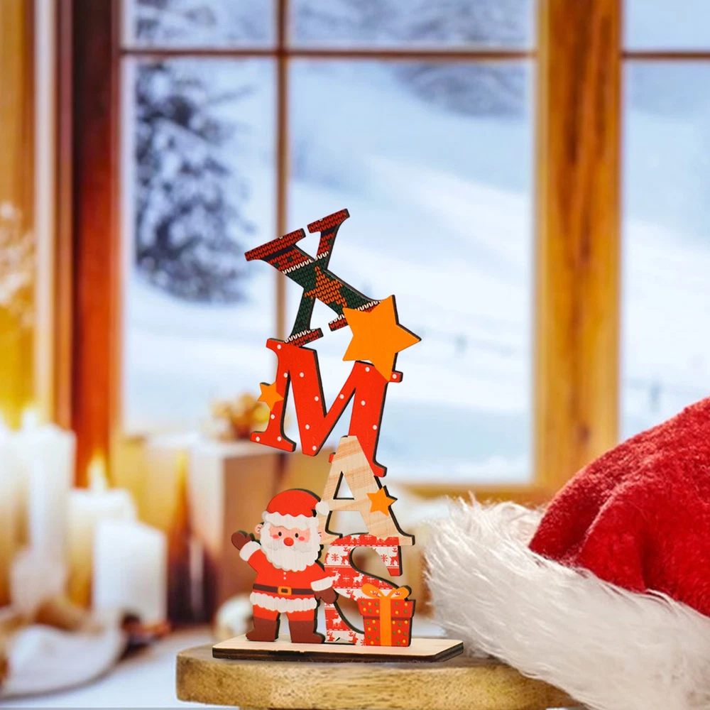 Wooden Christmas Letter Ornaments Table Top Decor Xmas Festive Decoration