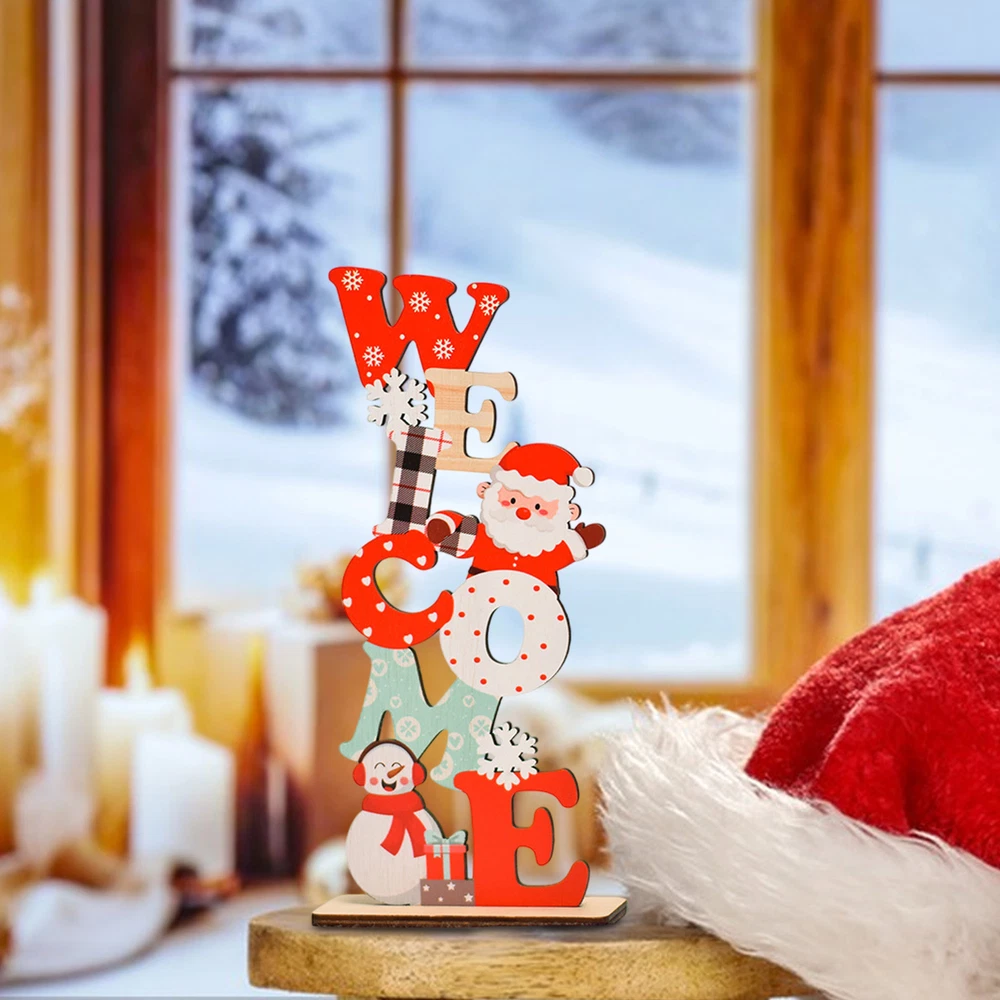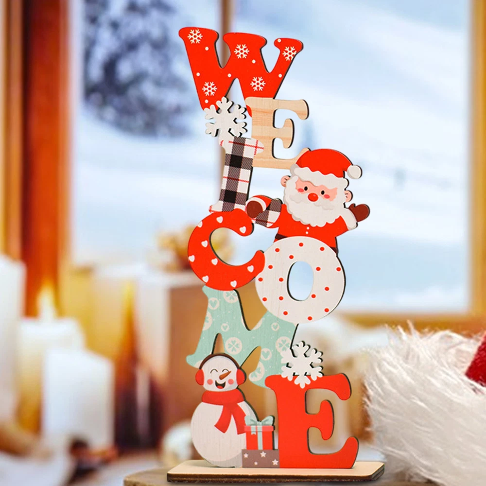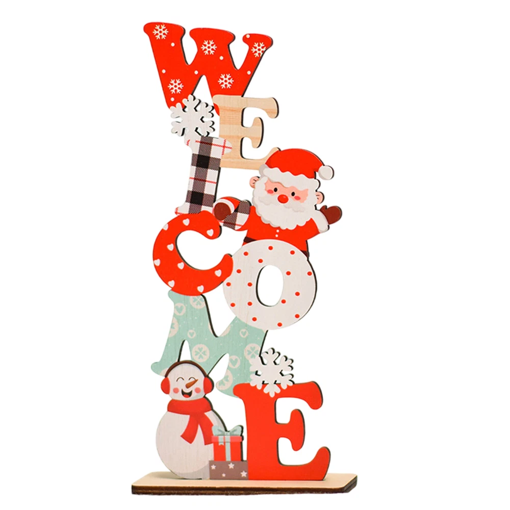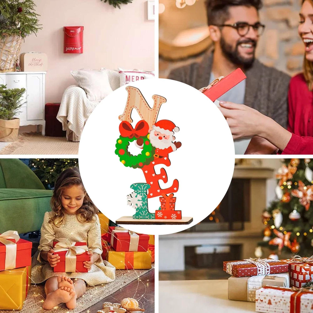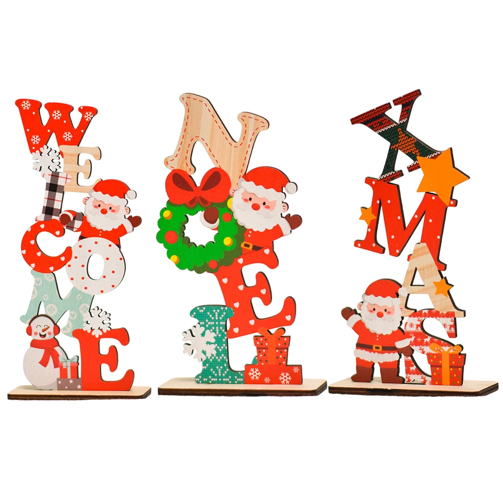 Wooden Christmas Letter Ornaments Table Top Decor Xmas Festive Decoration