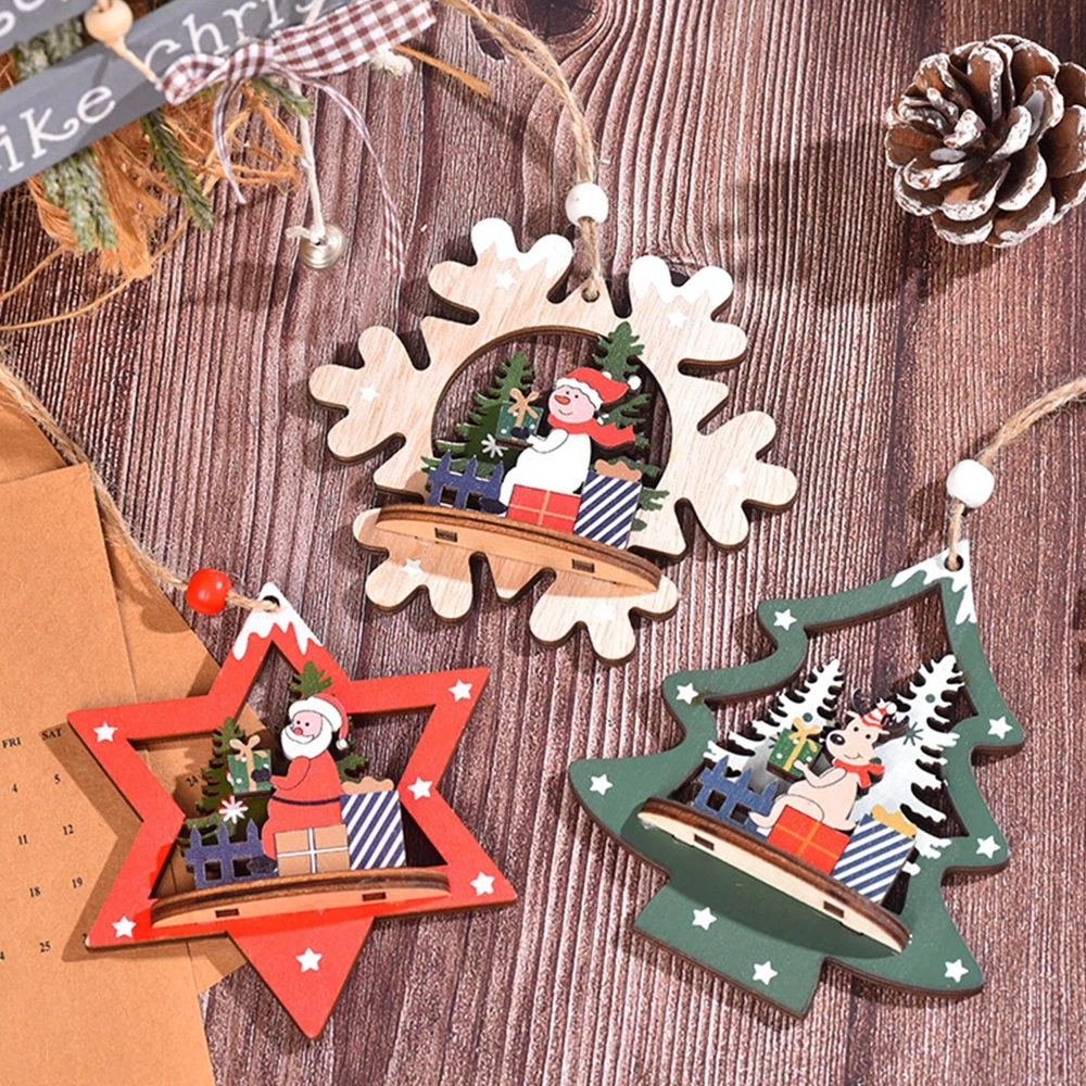 Wooden Christmas Ornaments Christmas Tree Decorations Winter Ornaments Landmark