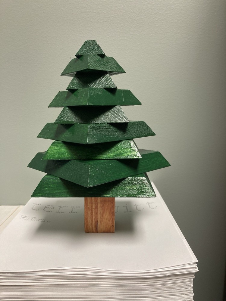 Occasion: Christmas Type: Decorated Tree Product: Table Center Piece Personalize: No Brand: Handmade Material: Wood Country of Origin: United States Theme: Seasonal Artificial/Fresh: Artificial Color: Green Size: Less Than 1 ft