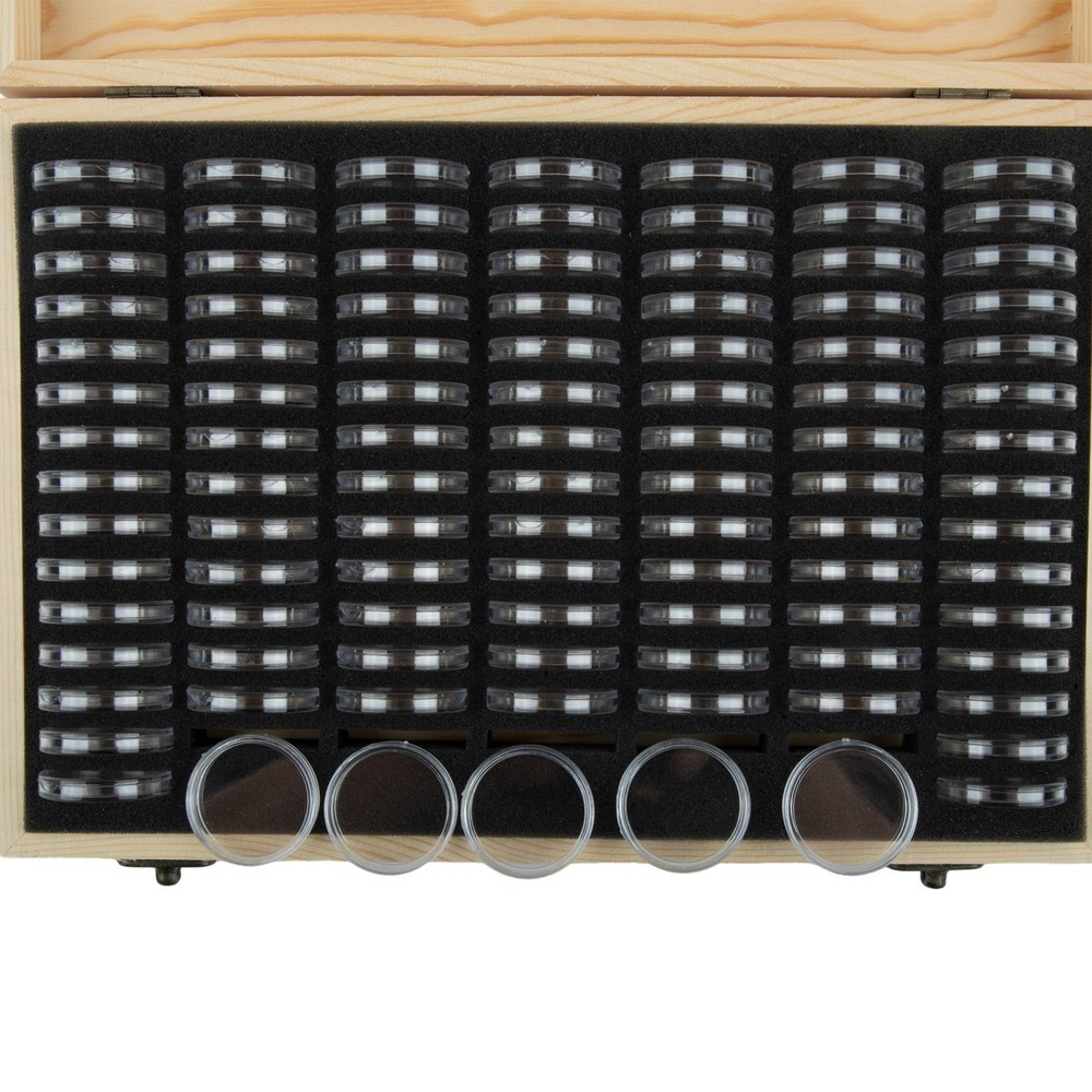 Product Description Feature: -50pcs,100pcs,18/21/25/27/30mm,, can be adjusted. -30pcs for coin diameter 12/16/18/20/23/25/27/30/32/34/36/39/40.5/44/46mm. -Finely carved, vintage castle. -Half moon opening, adjustment function. -Double layer for protection against oxidation. -Simple and stylish, neatly arranged. Specification: Size: as picture Material: wood Coin capacity: 30/50/100 pcs Note: Storage case only, coin not included Package Contents: 1 storage box 30/50/100 pcs x coin for protection box 30/50/100 pcs x adjustment mat Notes: 1. Due to many factors(such as the brightness of the display and the brightness of the light), the actual color of the item may be slightly different from the picture displayed on the website. 2. Please allow a slight manual measurement deviation of the data. Payment Payment must be completed within 5 days. If you have any problems about payment, please contact us via ebay message. Delivery details We only ship to confirmed ebay Order addresses. Please comfirm that your Order address is in line with your shipping address. Please kindly note that the c ombined shipping is not provided because the shipping fee is calculated by weight. Also, the each additional item means exactly the the same color and size. It takes about 7 -15 working days to US; about 10-30 working days to other countries. Transit time may be a little delayed because of the bad weather and customs inspection . If you do not receive your item within 30 working days since payment finished, please contact us immediately for further assistance. Contact us We strive for 100% customer satisfaction! Positive Feedback is very important to us. If you have any questions, p lease feel free to contact us via "Ask seller a question" . We will reply your email within 24 working hours.