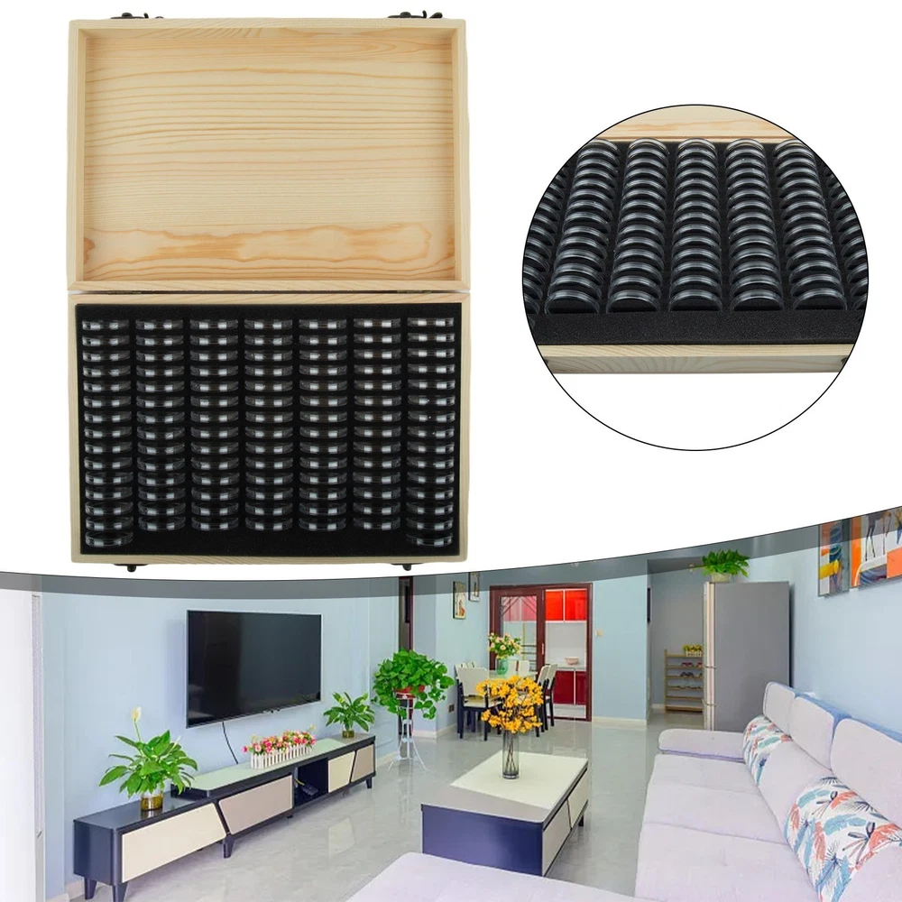 This wooden coin storage box is a must-have for collectors! The finely carved vintage castle design adds elegance, while the double-layer protection keeps coins safe from oxidation. The adjustable slots fit various coin sizes (12-46mm), and the half-moon opening makes retrieval easy. Sturdy, stylish, and neatly organized—perfect for displaying and preserving your collection. Love how functional and beautiful it is!
