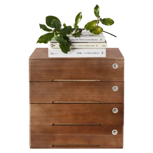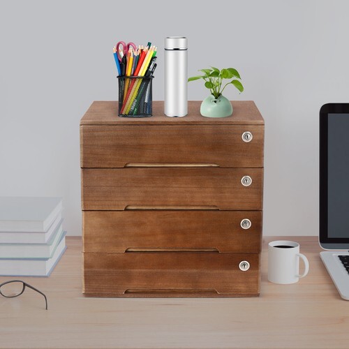 Desk Organizer with Drawers Wooden Desktop Storage Cabinet Storage Box, 4 Drawer
