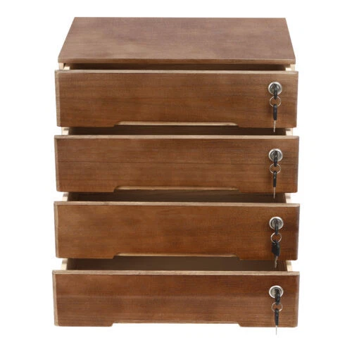 Specification Color: Walnut Material: Wood Finish: Painting Style: Compact Shape: Rectangular Assembly Required: No Product Care Instructions: Wipe with a Soft Cloth Recommended Uses For Product: Files Special Feature: Lockable Installation Type: Countertop Room Type: Home Office Door Style: Drawer, Lock Number of Tiers: 4 Each Drawer Size: 36*22*8cm/14.17*8.66*3.15in Product Size: 40*28*40.5cm/15.75*11*15.94in Package Size: 63*44.5*53.5cm/24.8*17.52*21.06in Gross Weight: 4.45kg/9.81lbs Net Weight: 4.1kg/9.04lbs Package Included 1* Desktop Storage Cabinet 8* Keys Wooden Desktop Storage Box, Desk Organizer, Desktop Box with Lockable Drawers Key Features Sturdy and Durable: It is made of high-quality wood with a painting treatment, which is eco-friendly, odorless, anti-corrosion, and rust-resistant , ensuring its beauty and long-time use. Excellent Organizer: This set of 4 drawers can sort and store data cables, kinds of files, and other daily essentials to create a cleaner, tidier office and home environment. Meanwhile, the top platform allows you to place some keys, plants, and chargers to make full use of your space. Minimalist Style: The walnut color scheme combines a rectangular shape and simple lines to create a minimalist aesthetic, adding a touch of refinement to your room. Thoughtful Design: The locking design ensures the security of your stored documents and comes with 4 pairs of keys for your convenience. Stable Construction: The thickened material and rectangular structure give it excellent stability, meeting your needs for storing various items without tipping o ver. Effortless Clean: Thanks to its smooth surface, simple construction, and clear texture, you can wipe it clean with a damp rag. Installation-free : What you receive will be an already assembled product, so you can use it directly, which is very convenient and time-saving. Ideal Gift: Thanks to its practicality, it will make a fine gift for family, friends, and loved ones on Christmas, Father's Day, Mother's Day, birthdays, anniversaries, and holidays. Details Rounded Edges: The rounded edges are burr-free , which is comfortable to touch a nd can care for your skin. Curved Handle: It helps you open and close the drawer conveniently while conforming to the design of the cabinet. Wood Rail: It is durable while ensuring smooth switching. Application It can be placed in the office, study, dresser, and more to store stamps, sticky notes, paper clips, scissors, bills, pens, pencils, business cards, notepads, cosmetic collections, toiletries, jewelry, hair accessories, crafts, etc. Specification Color: Walnut Material: Wood Finish: Painting Style: Compact Shape: Rectangular Assembly Required: No Product Care Instructions: Wipe with a Soft Cloth Recommended Uses For Product: Files Special Feature: Lockable Installation Type: Countertop Room Type: Home Office Door Style: Drawer, Lock Number of Tiers: 4 Each Drawer Size: 36*22*8cm/14.17*8.66*3.15in Product Size: 40*28*40.5cm/15.75*11*15.94in Package Size: 63*44.5*53.5cm/24.8*17.52*21.06in Gross Weight: 4.45kg/9.81lbs Net Weight: 4.1kg/9.04lbs Package Included 1* Desktop Storage Cabinet 8* Keys Notes Please note that the log product is subject to wood knots, scabs, mineral threads, etc., but it's normal. Please make sure that you do not mind before purchasing. Please note that this product does not include files and other storage items. Please place the product flat and try to avoid direct sunlight, and please do not put the furniture directly on the air conditioning or warm side, to avoid deformation and cracking of the furniture by moisture. Please allow the slight color difference caused by the shooting light and 1-3cm error due to manual measurement and make sure you do not mind before ordering. Payment Delivery details Terms of sales About us Contact us Payment We accept ebay payment 。 Fees such as import duties, taxes are not included in the item price or shipping costs. These charges are the buyer's responsibility. Delivery details Shipping: 2-9 working days to: USA Terms of sales We maintain high standards of excellence and strive for hundred percent customer satisfaction. Feedback is very important to us. We hope that you contact us immediately before you give neutral or negative feedback, so that we can address your concerns. It is impossible to address issues if we do not know about them! About us Your satis faction is our ultimate goal. We work hard to earn your trust and future business. Our certified technicians have tested each item before shipping. The unit comes with 1 year limited warranty on all manufacturing defects. a) If you receive a defective item, you may return it or ask for a discount. Please contact us within 14 days after you receive the package. b) What you returned must be intact and in its original packaging as re? u. Customer is responsible for shipping costs of the returned item. c) We will cover the cost of shipping back t with the shipping rate indicated in the registration page. We will send you a new unit or refund the full payment you paid. Thank you. Contact us Business Hour Business Hour: Monday To Friday: 8:30 AM to 5:00 PM (Beijing China time) Due to time zones, our reply to your questions may not be immediately. But within above working time, we will reply your email within 24 hours. If it's non-workdays, please kindly be patient and wait till Monday. Please contact us with ebay message. Please feel free to contact us if you have any questions. Monday To Friday: 8:30 AM to 5:00 PM (Beijing China time) Due to time zones, our reply to your questions may not be immediately. But within above working time, we will reply your email within 24 hours. If it's non-workdays, please kindly be patient and wait till Monday. Please contact us with ebay message. Please feel free to contact us if you have any questions.