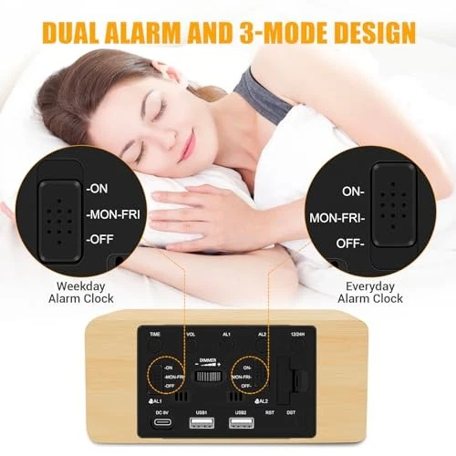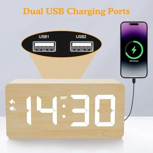 Menu 1. We require immediate payment. 2. We currently accept payment via eBay managed payments only. 3. Once payment is cleared, we will dispatch your shipment within 1-3 business days. Please refer to the "Shipping" tab for more information regarding shipping speed to your destination. Wood Digital Alarm Clock with 10W Fast Wireless Charger, USB Charging Ports, DST, Dimmable, Snooze, Large Number LED Display for Bedrooms, Desk, Living Room Table, Bedside, Nightstand (Bamboo) Product description ⏰【Large Time Display with Bold Numbers】- The large bold 1.8-inch numbers on this 6.6-inch compact digital alarm clock are very easy to read from across the room, it has no complicated settings and is very easy to operate, making it an ideal desk digital alarm clock for kids, teenagers, adults, seniors, especially for the elderly or people with poor eyesight. ⏰【0%-100% Stepless Dimmer】- Compared with the alarm clocks on the market that only have three or five levels of brightness adjustment, this wooden alarm clock adopts 100-level dimming technology. Customers can adjust the brightness to any percentile(range: 0% ~ 100%), which solves the problem of too bright display at night and helps you fall asleep better. ⏰【Fast Wireless Charger & USB Charging Ports】- Compared with other digital alarm clocks on the market which only have 5W wireless charging, this wooden digital alarm clock is upgraded to 10W wireless charging, which can achieve faster charging speed and save your phone charging time. Dual handy USB charging ports help you charge smart devices and other gadgets without having to look for adapters and other outlets. ⏰【Stylish Wood Grain Surface】- This exquisite digital alarm clock is made of high-quality wood and has a stylish design. It is not only a clock, but also a perfect decoration for your home. You can put it anyw in your room, on your bedside nightstand or living room table. The stylish appearance and multiple functions make it suitable as a gift for your family or friends. ⏰【Dual Alarm and Manual DST】- It has dual alarms, and each alarm clock has 3 working modes: off, everyday alarm, weekday alarm. The alarm volume is 5 level customizable from very low for light sleepers to extra loud for heavy sleppers adults. T is a DST button on the back, just press the DST button without setting the time, the DST icon will appear on the display and the time will move forward one hour, turn off DST and the time will move back one hour. ⏰【Reliable After-sale Service】- We offer 1-year free repleacment service and after-sale support, if t is any quality problem with wooden digital alarm clock, please contact us, 7x24 hours professional after-sale service will provide you with 100% satisfied solution! PLEASE MESSAGE US IF YOU HAVE ANY OTHER QUESTIONS, AND MANY THANKS FOR READING ALL OF THIS. Copyright ©#. All Rights Reserved.
