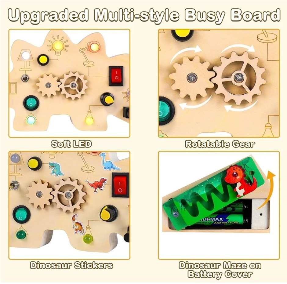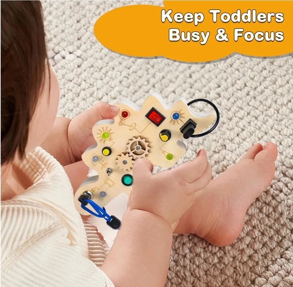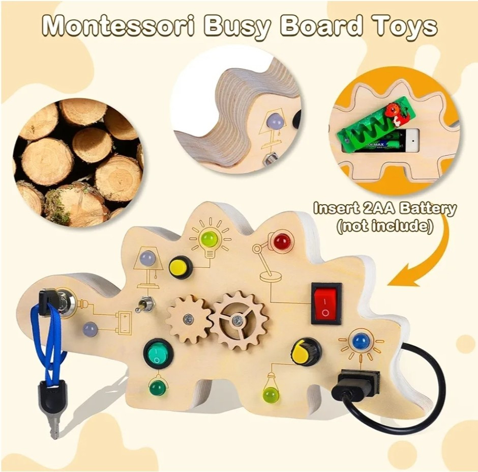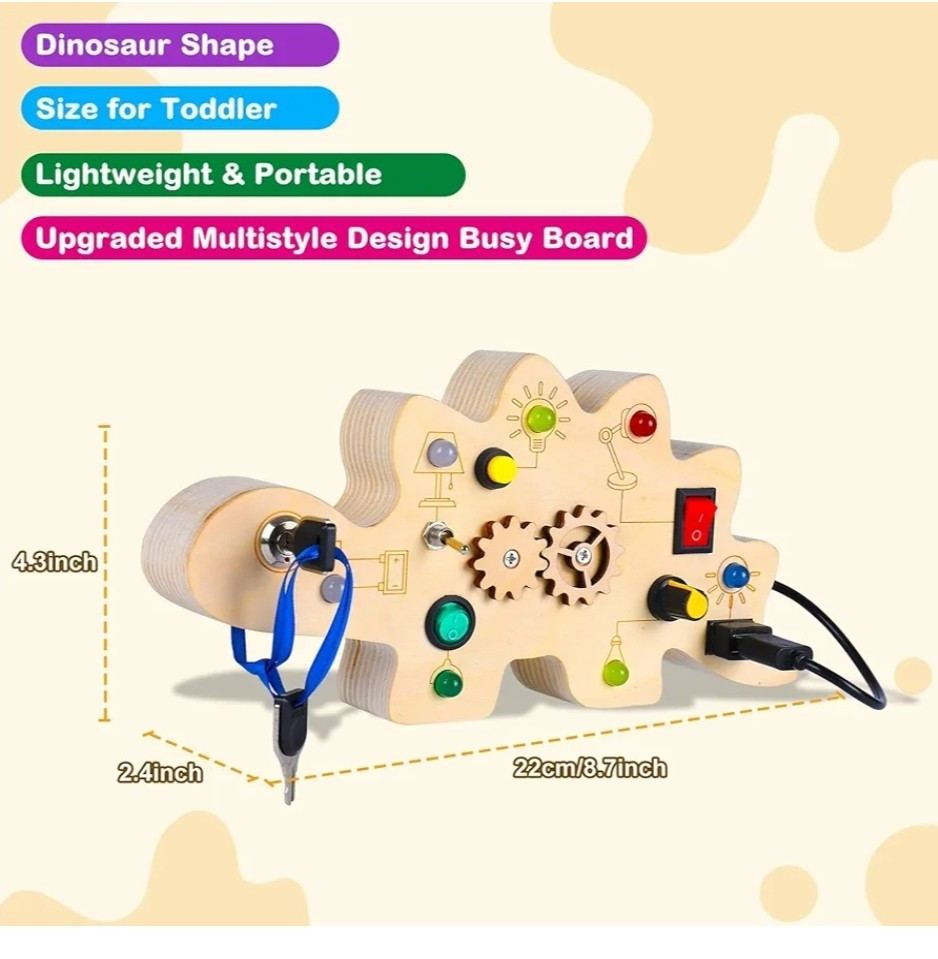 This dinosaur-shaped activity board for 1-year-olds is specially designed for young children who love switches and LED lights. The occupied board with LED light includes 7 switches that correspond to a different color or style of LED light, encourages children to recognize different colors early and exercise the thinking capacity and practical ability of the baby. Requires 2 AAA batteries (not included) Double-sided Montessori Occupancy Board that adds a variable hollow team game design for baby fingers, and the back of the battery compartment is a dinosaur maze game that makes young children fascinate, equipping with dinosaur stickers for children to decorate busy board or other toys for small children, multitasking busy board for small children enriches play methods and keeps the baby busy while learning The activity table for young children aged 2 to 4 years is suitable for different scenarios such as at home, or on the plane, in the car, during the journey. This is the perfect Christmas present for children, especially during long trips or long trips that can avoid screen time and make your baby calm down to do its own thing. Toys for boys and girls: This Montessori toy for young boys aged 1-2 will exercise the hands and thinking skills of your baby. And whether in a car, in an airplane, indoors or outdoors, the products will make the journey of your babies amazing. Christmas Toys for Babies 2 Years and Older, Birthday Gift, Christmas Gift for Back to School, New Year, Christmas Gift for Teenagers, Girls and Boys Easy to use and easy to use - Unlike other methods of producing tables occupied in the market, our sensory activity table is cut into a single piece of logs instead of glued. Each occupied baby board is carefully hand-moulded to ensure a smooth surface. Without sharp edges or small parts that are easily detached, baby Easter basket fillers ensure the safety of babies Early activity sensory toys, fine motor skills toys suitable for preschool children for sensory stimulation activities, such as Montessori birthday learning toys, Christmas, Thanksgiving gift, Easter basket, essential items for children