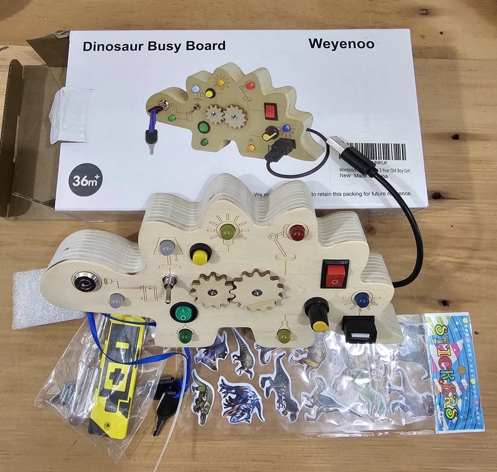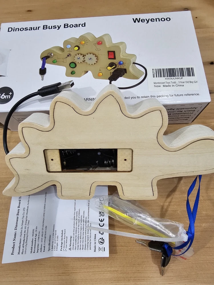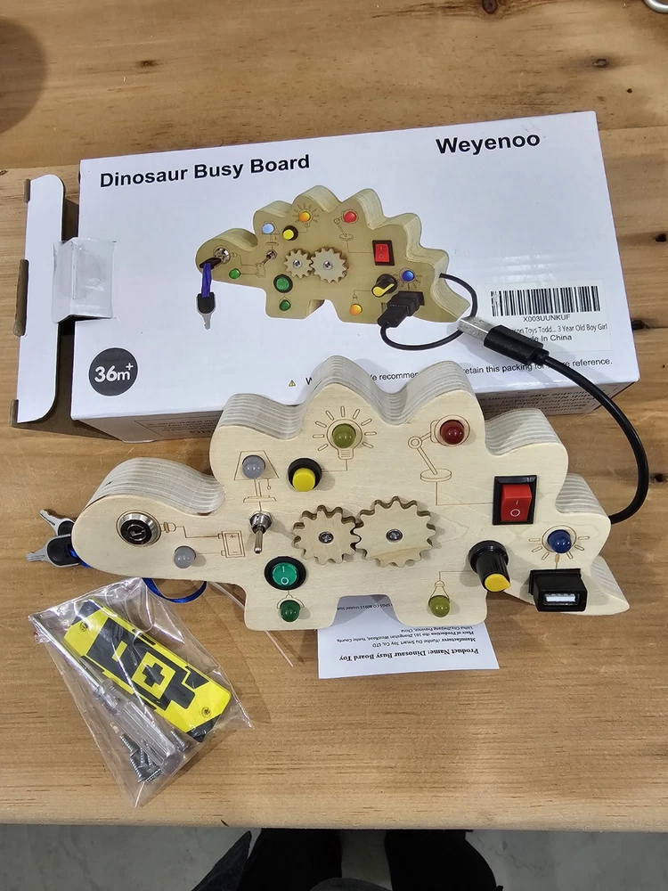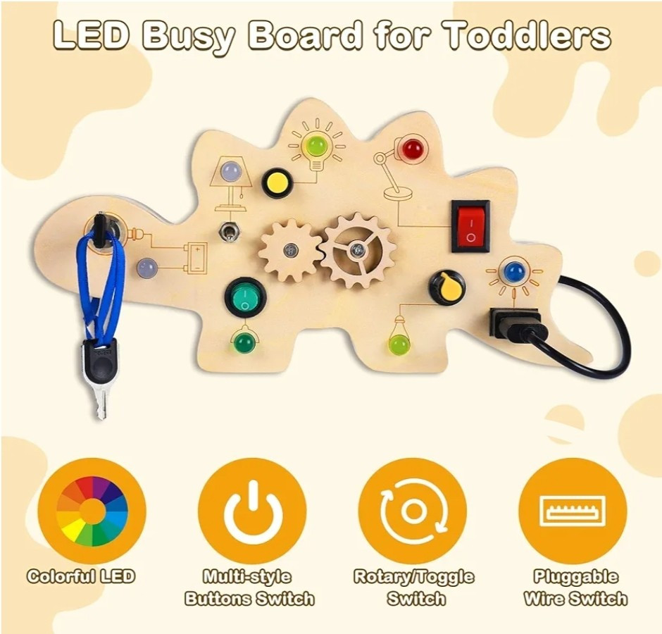 This dinosaur-shaped activity board for 1-year-olds is specially designed for young children who love switches and LED lights. The occupied board with LED light includes 7 switches that correspond to a different color or style of LED light, encourages children to recognize different colors early and exercise the thinking capacity and practical ability of the baby. Requires 2 AAA batteries (not included) Double-sided Montessori Occupancy Board that adds a variable hollow team game design for baby fingers, and the back of the battery compartment is a dinosaur maze game that makes young children fascinate, equipping with dinosaur stickers for children to decorate busy board or other toys for small children, multitasking busy board for small children enriches play methods and keeps the baby busy while learning The activity table for young children aged 2 to 4 years is suitable for different scenarios such as at home, or on the plane, in the car, during the journey. This is the perfect Christmas present for children, especially during long trips or long trips that can avoid screen time and make your baby calm down to do its own thing. Toys for boys and girls: This Montessori toy for young boys aged 1-2 will exercise the hands and thinking skills of your baby. And whether in a car, in an airplane, indoors or outdoors, the products will make the journey of your babies amazing. Christmas Toys for Babies 2 Years and Older, Birthday Gift, Christmas Gift for Back to School, New Year, Christmas Gift for Teenagers, Girls and Boys Easy to use and easy to use - Unlike other methods of producing tables occupied in the market, our sensory activity table is cut into a single piece of logs instead of glued. Each occupied baby board is carefully hand-moulded to ensure a smooth surface. Without sharp edges or small parts that are easily detached, baby Easter basket fillers ensure the safety of babies Early activity sensory toys, fine motor skills toys suitable for preschool children for sensory stimulation activities, such as Montessori birthday learning toys, Christmas, Thanksgiving gift, Easter basket, essential items for children