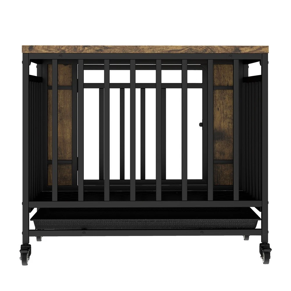 [Rustic Retro] Vintage wood style iron wood model dog crate with iron door and tray for medium/small dogs indoors for rustic vintage style. [multi-functional] Not only does this crate provide a resting area for your dog, but it can also be placed in a room for you to use as a side table or nightstand, and it can easily be incorporated into your home décor to elevate your space - this crate meets all of your dog's needs from your dog to you and your home. [Pull-Out Tray] dog crates with pull-out tray, which can be placed below for the dog's fallen hair, debris, and dirt. Easy to remove and rinse. [Sturdy and Chew-Resistant] Made of high-strength metal steel and high-quality MDF, the Dog Crate Furniture is solid and easy to care for, providing a long-lasting, stable and safe resting place for your animal friends. [Easy to assemble] To make the assembly of the dog crate as easy as possible, we have provided clear and detailed instructions and numbered parts. You can review the instructions and then follow the steps for assembly. Description This Dog Crate Vintage Wooden Style Ironwood Dog Crate with Iron Door and Tray can not only provide a resting area for your dog, but also can be placed in the room to use as a side table or nightstand, and it can also be easily integrated into your home décor to enhance the space, suitable for medium/small dogs indoors with rustic vintage style. Description & Dimensions Product Type metal dog crate Overall Product Dimension 32.5"L x18.5 "W x 27.3"H Color Vintage wood color Overall Product Weight 38.18LBS Product Material Metal+MDF Numbers of Package 1 Country of Origin / Package Dimension & Weight Please refer to the Specification Note: All the pictures are taken by actual samples, slight chromatic aberration may occur due to lighting or display.