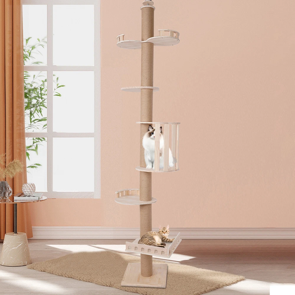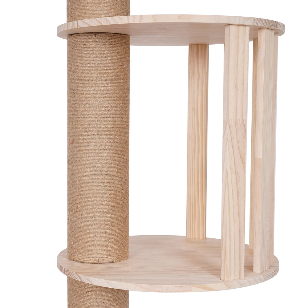 Wooden Floor to Ceiling Cat Tree Tower Natural Sisal Rope Scratching Post