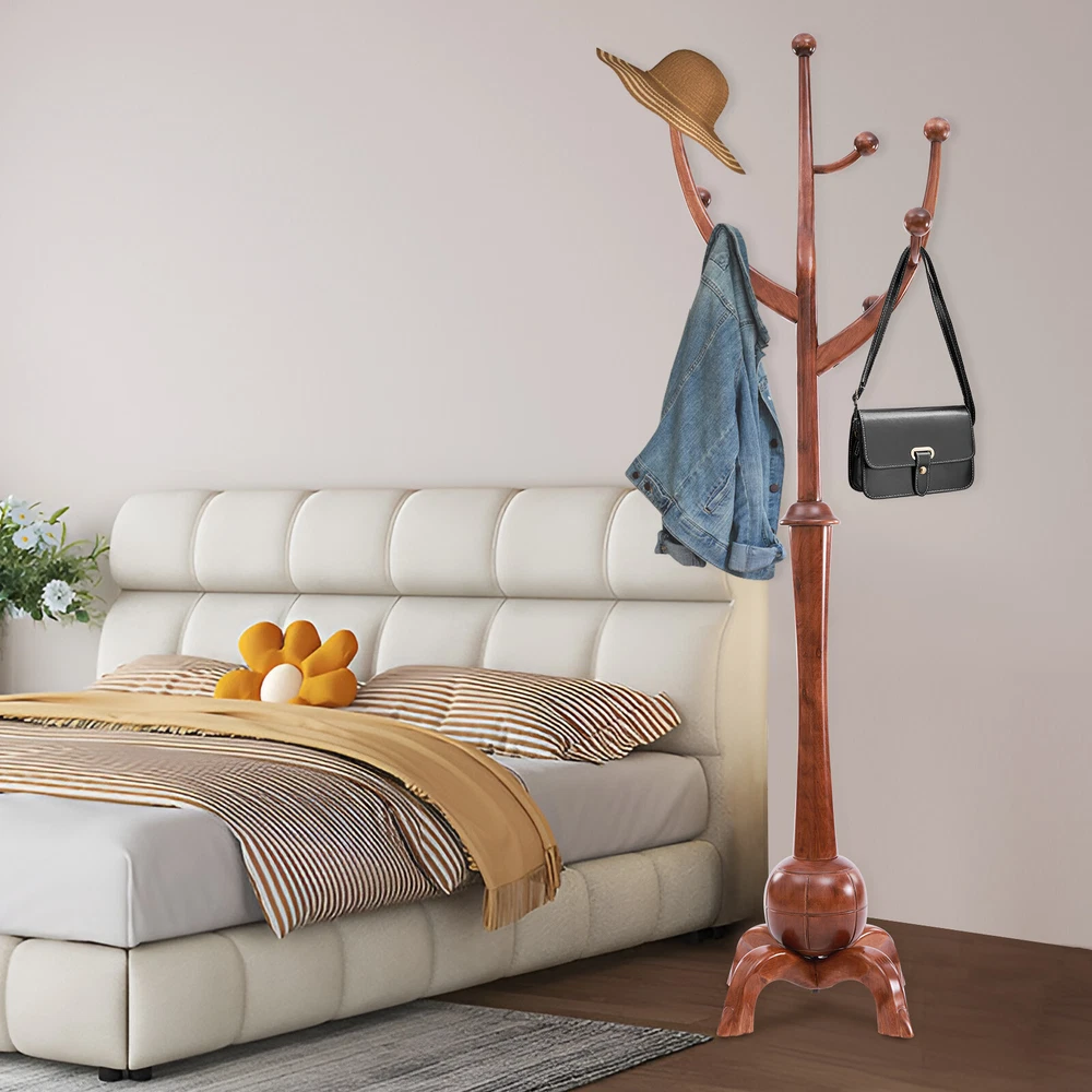 Wooden Freestanding Clothes Rack Bedroom Coat Rack Tree Stand Hanger 8 Hooks