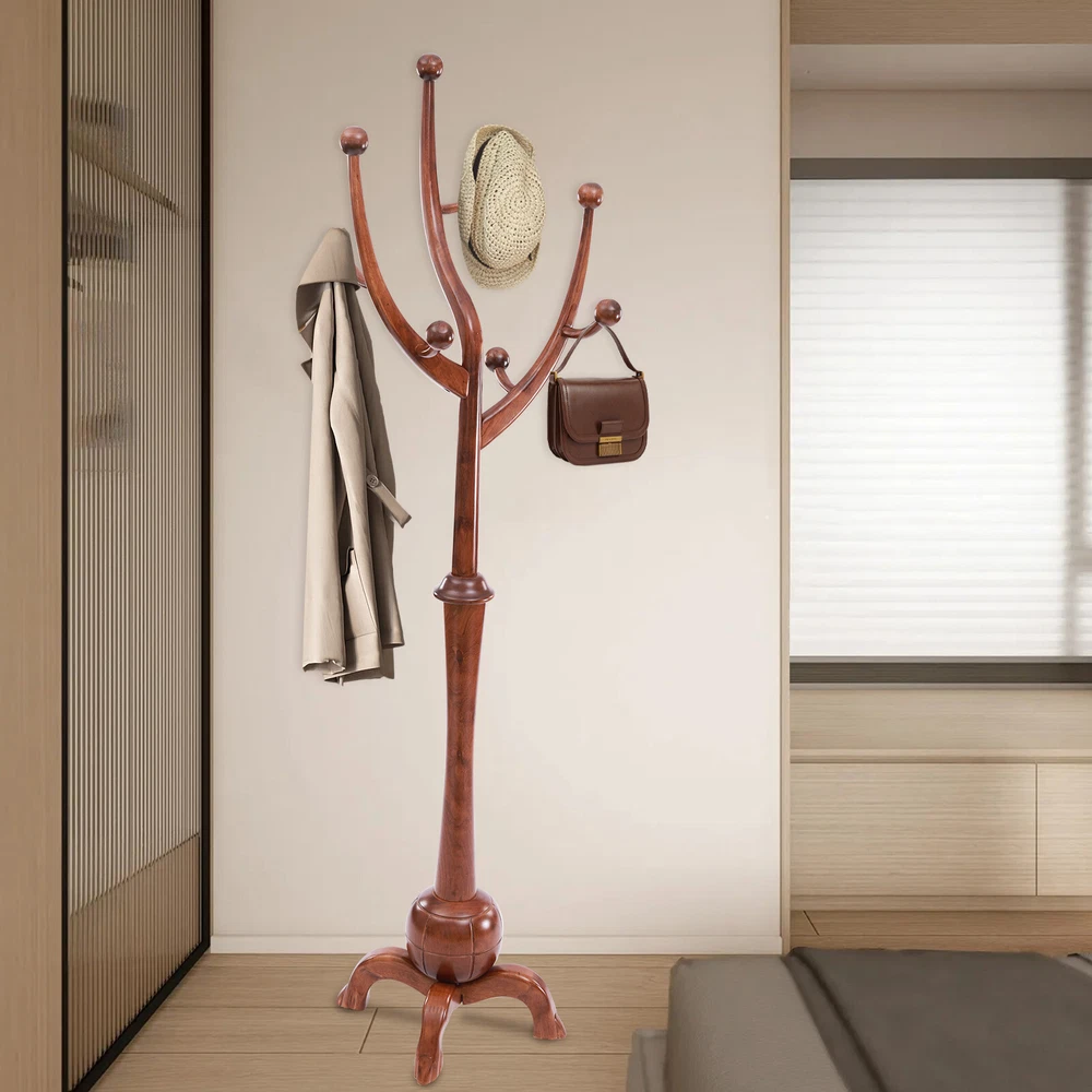 Specifications Color: Walnut Color Shape: Tree-shaped Material: Rubber Wood Surface Treatment: Spraying Paint Mount Type: Free Standing Assembly Required: Yes Recommended Uses For Product: Coats Max. Load Bearing Capacity: 50kg/110.23lbs Base Size: 50*35cm/19.69*13.78in Product Overall Height: 180cm/70.87in Packaging Size: 100*54*19.5cm/39.37*21.26*7.68in Gross Weight: 10kg/22.05lbs Net Weight: 9kg/19.84lbs Package Included 1* Coat Rack Other Accessories for Assembly Wooden Freestanding Clothes Rack Bedroom Coat Rack Tree Stand Hanger 8 Hooks Description Description This coat rack made of selected rubberwood not only shows excellent load-bearing performance but also has an elegant design, adding a touch of warmth and natural flavor to the living room. It cleverly helps you realize the orderly storage of clothing, keeping your clothes and space neat and clean, creating a comfortable and clean living environment for you. Key Features Build to Last : Premium rubber wood with a spray painting process makes this product hard, not easy to rust, wear, and deform, ensuring a long service life. High Load Bearing Capacity: The strong wood material, stable base, and thick main support pole give this product a high load bearing(110.23 lbs), making it hold your coats, jackets, handbags, etc. with ease. Life Assistant: The right height of 70.87 inches, open design, and 8 hooks allow you to hang jumpers, coats, bags, hats, etc. with great convenience, making your room cleaner and more organized. Creative Appearance: The tree shape in walnut brown color gives the rack a dual aesthetic of nature and art, adding a touch of elegance, uniqueness, and taste to your room. Simple Installation: With complete accessories and a simple structure , you can easily finish the installation with less time and effort. Easy to Clean: The smooth surface and simple structure allow you to clean the product with a damp cloth. Ideal Gift : Thanks to its high quality and practicality, you can give it as a gift to your family or friends at Thanksgiving, housewarming, or other holidays. Buy with Confidence: We stand behind all our guests and look forward to assisting you with your purchase. It is our pleasure to answer your confusion and questions. The end of the story between us is not "we sell and you buy". Details Sturdy Base: The four thickened feet with a curved design stabilize the product and prevent it from sliding and shaking. Rounded Edges: The round and smooth edges can protect your hands and clothes from getting scratched during daily use. Application It is a great choice for the corridor, foyer, entrance, bedroom, living room, hallway, balcony, office, hotel, apartment, or other rooms. It can be used to hang your coats, hats, scarves, towels, briefcases, bags, backpacks , winter jackets, and more. Specifications Color: Walnut Color Shape: Tree-shaped Material: Rubber Wood Surface Treatment: Spraying Paint Mount Type: Free Standing Assembly Required: Yes Recommended Uses For Product: Coats Max. Load Bearing Capacity: 50kg/110.23lbs Base Size: 50*35cm/19.69*13.78in Product Overall Height: 180cm/70.87in Packaging Size: 100*54*19.5cm/39.37*21.26*7.68in Gross Weight: 10kg/22.05lbs Net Weight: 9kg/19.84lbs Package Included 1* Coat Rack Other Accessories for Assembly Notes Please check the size carefully before ordering. Please note that clothes are not included. Please do not expose the product to direct sunlight for extended periods of use. Please do not touch the product with sharp items. Please allow the slight color difference caused by the shooting light and 1-3cm error due to manual measurement, and make sure you do not mind before you order. tu1 Payment Delivery details Terms of sales About us Contact us Payment We accept ebay payment 。 Fees such as import duties, taxes are not included in the item price or shipping costs. These charges are the buyer's responsibility. Delivery details Shipping: 2-9 working days to: USA Terms of sales We maintain high standards of excellence and strive for hundred percent customer satisfaction. Feedback is very important to us. We hope that you contact us immediately before you give neutral or negative feedback, so that we can address your concerns. It is impossible to address issues if we do not know about them! About us Your satis faction is our ultimate goal. We work hard to earn your trust and future business. Our certified technicians have tested each item before shipping. The unit comes with 1 year limited warranty on all manufacturing defects. a) If you receive a defective item, you may return it or ask for a discount. Please contact us within 14 days after you receive the package. b) What you returned must be intact and in its original packaging as re? u. Customer is responsible for shipping costs of the returned item. c) We will cover the cost of shipping back t with the shipping rate indicated in the registration page. We will send you a new unit or refund the full payment you paid. Thank you. Contact us Business Hour Business Hour: Monday To Friday: 8:30 AM to 5:00 PM (Beijing China time) Due to time zones, our reply to your questions may not be immediately. But within above working time, we will reply your email within 24 hours. If it's non-workdays, please kindly be patient and wait till Monday. Please contact us with ebay message. Please feel free to contact us if you have any questions. Monday To Friday: 8:30 AM to 5:00 PM (Beijing China time) Due to time zones, our reply to your questions may not be immediately. But within above working time, we will reply your email within 24 hours. If it's non-workdays, please kindly be patient and wait till Monday. Please contact us with ebay message. Please feel free to contact us if you have any questions. Feature 2 Special Fashion Design shipping notice Can not ship to Puerto Rico,Alaska/Hawaii Transportation does not include canarias Feature 4 Trouble-free Installation Color Walnut Color Shape Tree-shaped Material Rubber Woo