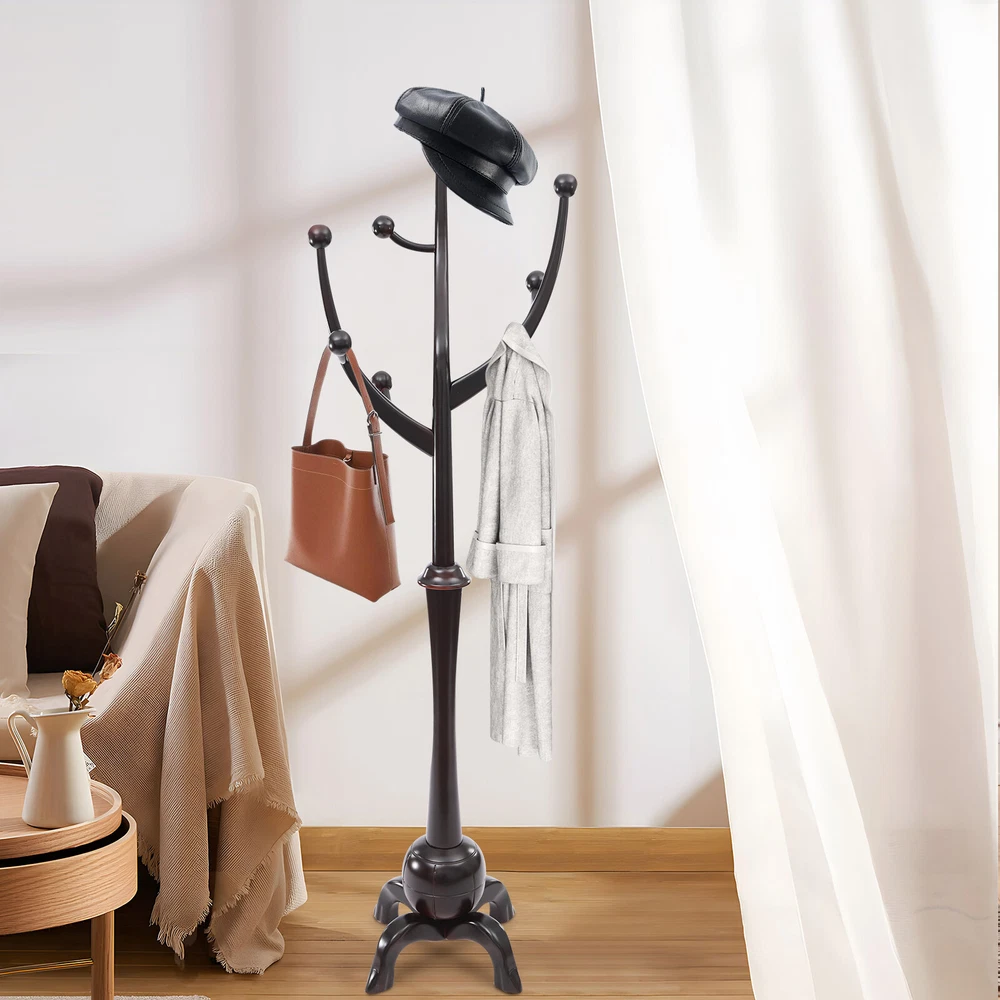 Wooden Freestanding Coat Rack with 8 Hooks for Bedroom or Entryway