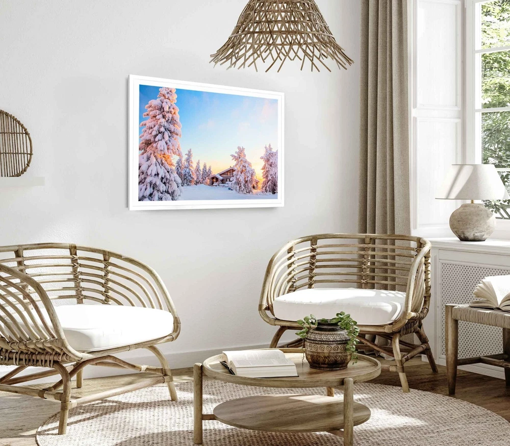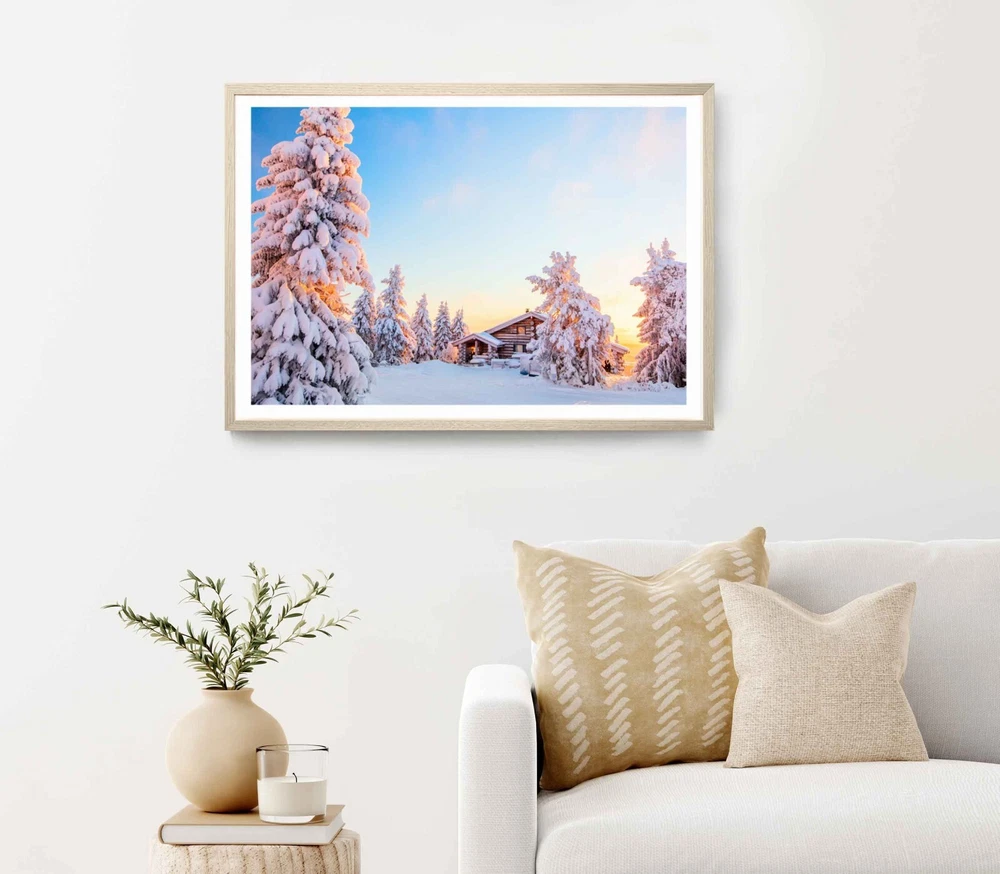 Wooden Hut & Snow Covered Trees Poster Premium Quality Choose your Size