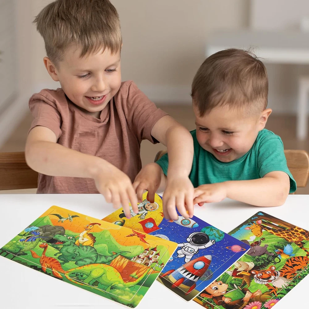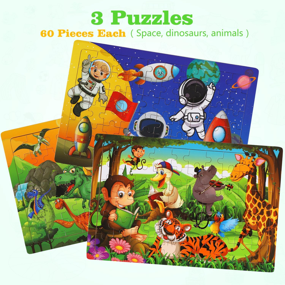 Store New Arrivals Add to Favorite View Feedback Contact Wooden Puzzles Toys for Kids Ages 4-6, Set of 3 Packs with 60-Piece Wood Jigsaw Description Item Weight 13.4 ounces Product Dimensions 11.8 x 7.9 x 0.59 inches Manufacturer recommended age 36 months - 8 years Manufacturer Slotic Educational and Entertaining: Engage young minds with our Wooden Puzzles, specifically designed for kids ages 4-6. Each puzzle pack contains 60 durable wood pieces, offering hours of educational fun as children explore three captivating themes: Dinosaurs, Animals, and Space. Premium Quality Construction: Crafted from high-quality wood, our puzzles are built to last. The sturdy construction ensures that pieces fit together smoothly, providing a satisfying tactile experience while enhancing fine motor skills and hand-eye coordination. Versatile Learning Tools: These puzzles go beyond mere entertainment. They serve as valuable learning tools, promoting cognitive development and problem-solving abilities. As children assemble intricate scenes of dinosaurs roaming the earth, animals in their habitats, or astronauts exploring the cosmos, they're actively learning and expanding their knowledge base. Ideal for Growing Minds: Our puzzles cater to a wide age range, making them perfect for kids aged 3 to 8 years old. With varying difficulty levels and themes, they grow with your child, offering new challenges and opportunities for learning as they develop and mature. Perfect Gifts for All Occasions: Whether for birthdays, holidays, or just because, our Wooden Puzzles make thoughtful and engaging gifts for boys and girls alike. Spark their imagination and encourage creativity with these timeless toys that provide endless entertainment and educational benefits. Step into a world of imagination and learning with our Wooden Puzzles for Kids Ages 4-6! This set features three packs, each containing 60-piece wood jigsaw puzzles themed around Dinosaurs, Animals, and Space. Crafted from premium wood, these puzzles are built to withstand the rigors of playtime while offering endless entertainment. Designed to stimulate young minds, our puzzles promote cognitive development, hand-eye coordination, and problem-solving skills. As children piece together vibrant scenes of prehistoric creatures, celestial bodies, and adorable animals, they embark on a journey of discovery and exploration. Ideal for boys and girls aged 3 to 8 years old, our Wooden Puzzles make perfect gifts for birthdays, holidays, or any occasion. Fuel their curiosity and creativity with these engaging puzzles, designed to inspire learning through play. Upgrade playtime with our Wooden Puzzles for Kids Ages 4-6 today! ABOUT US We offer the best prices around on high quality products. Our E-store includes media such as books, movies, music and games while offering electronics, toys, sporting apparel, clothing, tools, general home, garden items and more. SHIPPING We are always working hard to ensure your package arrives as soon as possible. Please understand that some factors like weather, high postal traffic, and the performance of shipping companies are outside of our control. We offer free shipping to the lower 48 states and ship within 2 business days of payment, usually sooner. We do not accept P.O. Boxes. Please provide a physical address. RETURNS We offer a 30-Day Return Policy on items which you are not completely satisfied with. You have the option for a full-refund or an exchange of the item. No returns are available on items shipped outside of the USA. PAYMENT We accept PayPal. CONTACT US This page content is yet to come Please ad us to your favorite seller and visit again later Thank You CUSTOMER SATISFACTION We try our very best to make sure every customer is completely satisfied. If there's a problem, message us! We're happy to help.