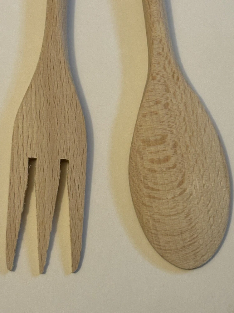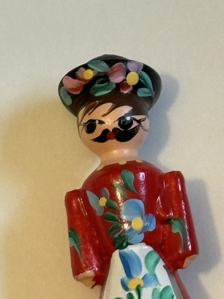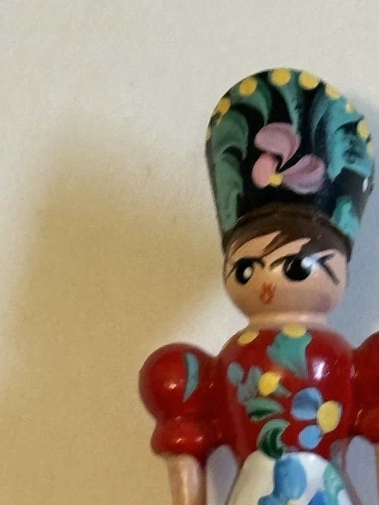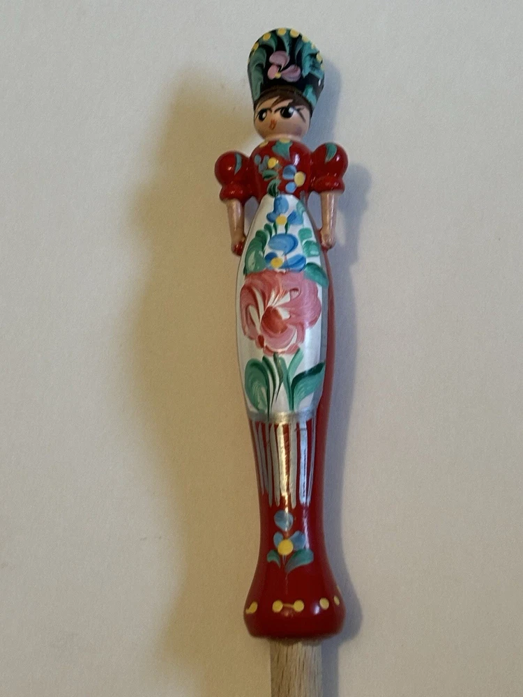 Wooden Kitchen Utensils, 12” Long, handles are plastic, one fork is a woman with Hungary inscribed on the handle and a spoon is a man with Budapest inscribed on the handle. Very colorful and unique items.