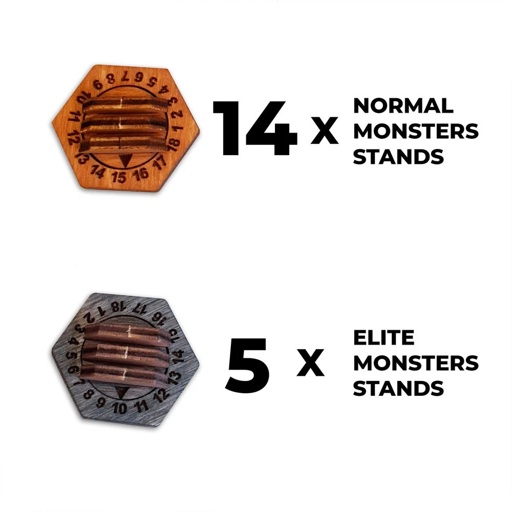 The main mission of Smart One Box () is one really smart box for everything. We will take care of the safety and storage of your board games and you enjoy them. Our team consists of fans of games, so all the accessories, organizers and add-ons that we make are tested empirically and by us personally. Appreciate the decent quality of our player boards and mats, organizers, trays, insert, boxes and other accessories for board games and become a part of our team! Take the role of a wandering adventurer with your own special set of skills and reasons for traveling to dark corner of the world! Be deeply engrossed in board game and Smart One Box () will help to organize your game space! Our team has created the set that includes 19 pieces of Monster game stands. The box includes (board game is not included and sold separately): Set of 19 stands will be convinient for one or two players. - five stands with colored gray basis for Elite Monsters - fourteen standard stands for Normal Monsters Enjoy your game with Smart One Box accessories! Smartly organize your game - A useful monster health tracker is to upgrade and enhance your organizer for the Gloomhaven board game. These small wooden stands will speed up your board game setup and improve your game experience by making it more convenient. Focus more on the gameplay. Compatible with the Gloomhaven board game - These game token stands are designed for more than 90 unique game scenarios. monster stands were crafted by experienced Gloomhaven players to securely hold monster cards and effect tokens directed at the monster. Our health counter standees have been modernized and are now suitable for both the EU and US versions of Gloomhaven cards with optimal compatibility. The 19-piece pack is convenient for one or two players. Durability and quality - Our health tracker for Gloomhaven is crafted from high-quality, eco-friendly birch plywood. The monster card holders offer superior convenience and durability compared to other materials commonly used in similar products. The standees feature an integrated dial, allowing players to easily track wound scores for both enemies and battle characters during the game. The disk can be smoothly turned clockwise or anti-clockwise as needed. Quick and easy assembly - Assemble our standees designed for use with Gloomhaven effortlessly in just a few seconds, without the need for glue. This quick setup allows you to enjoy an organized game immediately. These standees can conveniently replace base game standees and partially supplement certain functions of monster statistic cards. Utilize the monster stands to easily track damage for both normal and elite versions of monsters in your Gloomhaven board game. Ideal gift for board game enthusiasts and those with board game organizers - game token holders make for a thoughtful and practical present for your friends, acquaintances, or loved ones. This unique gift can be genuinely appreciated by individuals who enjoy board games, especially those with specific organizers such as Gloomhaven. Show your appreciation for their hobby and demonstrate your thoughtfulness by presenting them with this practical and versatile item.