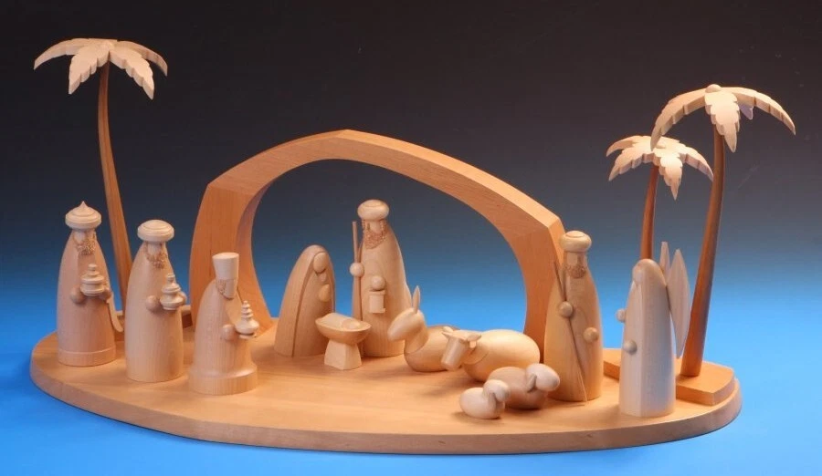 Wooden Nativity Scene The Three Wise Men 12cm Set This product data sheet is originally written in English. This is a nativity scene that has been beautifully turned from a light coloured maple wood ( Acer spp ). Each human figure is approximately 12cm tall. It can be built up into a large scene comprising eight different groups. THE SECOND PICTURE SHOWS HOW THIS SET MAY LOOK WITHIN A LARGER GROUP OF SETS BUT ONLY THE THREE WISE MEN IS OFFERED FOR SALE WITH THIS LISTING. OTHER FIGURES NOT INCLUDED. The group here is : THE THREE WISE MEN This is a nativity scene that has been beautifully turned from a light coloured maple wood (Acer spp). Each human figure is approximately 12cm tall. It can be built up into a large scene comprising eight different groups. THE SECOND PICTURE SHOWS HOW THIS SET MAY LOOK WITHIN A LARGER GROUP OF SETS BUT ONLY THE THREE WISE MEN IS OFFERED FOR SALE WITH THIS LISTING. OTHER FIGURES NOT INCLUDED. The group here is : THE THREE WISE MEN Brand Unbranded MPN 124N Country/Region of Manufacture Germany Unit Quantity 1 EAN Does not apply