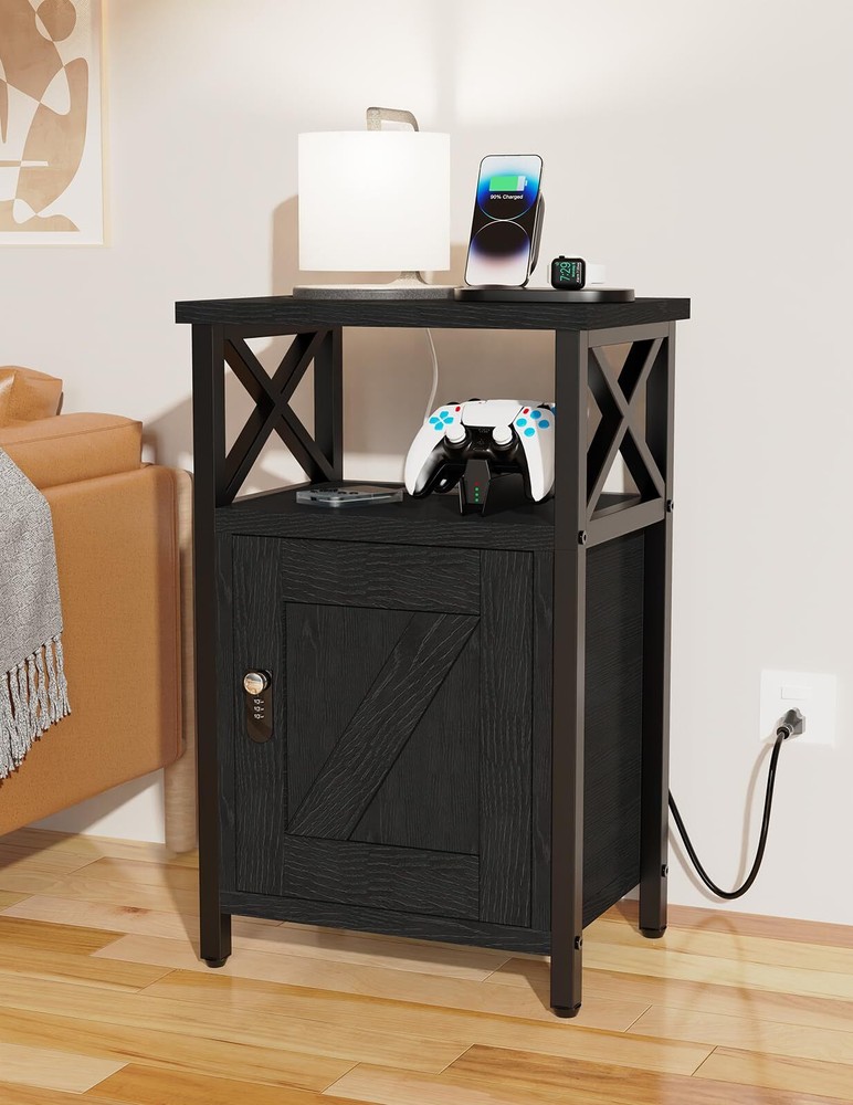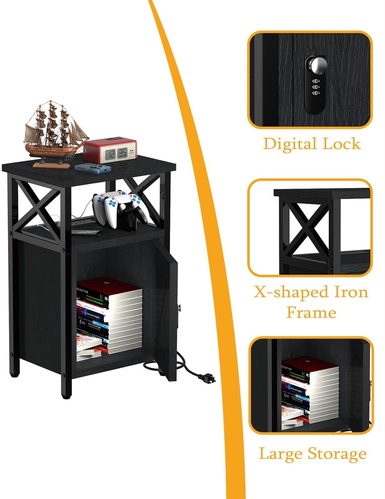 Wooden Nightstand with Charging Station, Bed Side Table with Drawers, Bedside Table with Lock, 3 USB & 2 Outlets, Night Stand with Storage, End Tables for Living Room, Bedroom, Dorm, Black 【Nightstand with Lock】 Our night stand upgraded a 3-number combination lock to keep your personal items safe and protect your privacy. It's always important to have a secure place to store your belongings, especially if you live with roommates or have guests over frequently. With a digital lock, your items are safe and secure 【Bedside Table with Charging Station】 Upgraded charging station features 3 USB ports, 2 AC outlets, with a 5 ft long power cord. Our bedside table allow you to charge multiple devices at the same time that will fully satisfy your charging needs, everything is within your arm's reach 【Excellent Appearance Side Table】 The bed side table blends modern style suitable for various home decor styles. It can match any space in the bedroom, living room, dorm and office, small space as an end table, night table, corner table, sofa side table 【Large Storage Space】 With multiple cabinet and shelves, this end table provides plenty of room to store your essentials such as books, magazines, and other personal items. The spacious storage area allows you to keep your bedside organized, making it easy to find things when you need it 【Sturdy and Strong】 This nightstand made from high quality wood and sturdy metal, it is strong and sturdy, able to withstand daily wear and tear. The bedside table is a strong and long-lasting piece of furniture that will provide you with years of use and enjoyment 【Easy Assembly & Professional Service】Each nightstand comes with an easy-to-follow instruction manual and all necessary tools. Assembly is a breeze, regardless of skill level. Plus, we offer a 1-year warranty with a speedy service team available to assist within 24 hours Multifunctional End Table This nightstand is a versatile piece of furniture that can be used as a side table in the living room. Its height is suitable for use next to a sofa or bed, providing a convenient surface for placing drinks, books, or other items. Spacious Table Top and Open Storage Shelf: The spacious table top and open storage shelf can meet more storage needs. Its storage cabinet provides you more private storage space. You can put clocks, lamps, books, cups, cell phones and anything else on them. This bedside table makes your space more neat and artistic. Special Decorative Storage Design The design of decoration brings charming bohemian style to your space. The wooden used in this nightstand adds a touch of organic charm to its design. Its natural color and unique patterns add depth and character to the nightstand SHIPPING Domestic Buyers - We have confidence in our products, but if you are not fully satisfied please contact us within 30 days of purchase and you will get full refund. - We ship within 3 business days of payment, usually sooner - We offer FREE shipping on all orders! - We only ship to the lower 48 states, no APO/FPO addresses or PO Boxes allowed International buyers – please note: Import duties, taxes, and charges aren't included in the item price or postage cost. These charges are the buyer's responsibility. - Please check with your country's customs office to determine what these additional costs will be prior to bidding or buying. * Order Cancellation Policy ** You can return a product for up to 30 days from the date you purchased it. 1. The seller reserves the right to cancel the special case only due to eBay cancellation fee. 2. The decision of seller is the final. 3. The seller will respond to the cancellation request within 2 business days. Please wait for the result of cancellation. 4. In case the cancellation is not completed by some reasons, the buyer can follow the options below to get the refund. 4.1 The buyer can reject the item when it arrives. 4.2 The buyer can send the item back to the seller within 30 days If the buyer receives item (USA Shipment ONLY). The seller will provide the FREE return label to the buyer when the buyer opens " Return Item" case on eBay by using the reason as "Change my mind" ONLY. 5. When buyer has placed the order. The order will be processed and completed by automatic warehouse system within 5 minutes. In case that buyer sends the cancellation request after 5 minutes of placing the order, the request will be rejected. **Sending direct message to cancel the order is not allowed for every case.* Return Policy For the return case - If buyer would like to return the items for refund or replacement, please CONTACT SELLER to receive the free return label from seller. The refund or replacement will be processed with the tracking number of return label which is provided by seller only. The other ways of return which are not approved by seller will not be processed for the refund or replacement.
