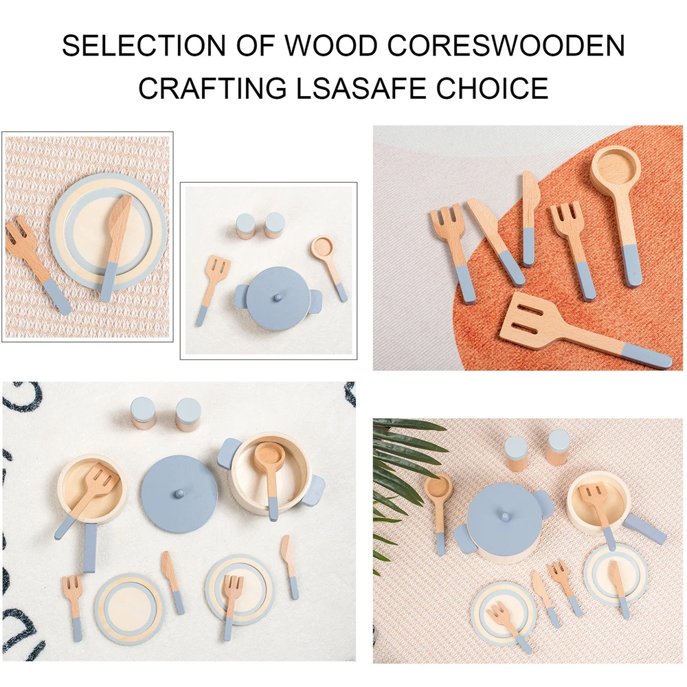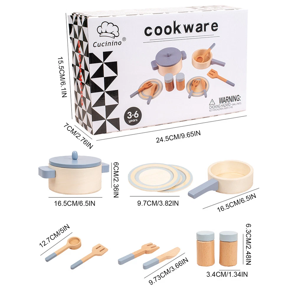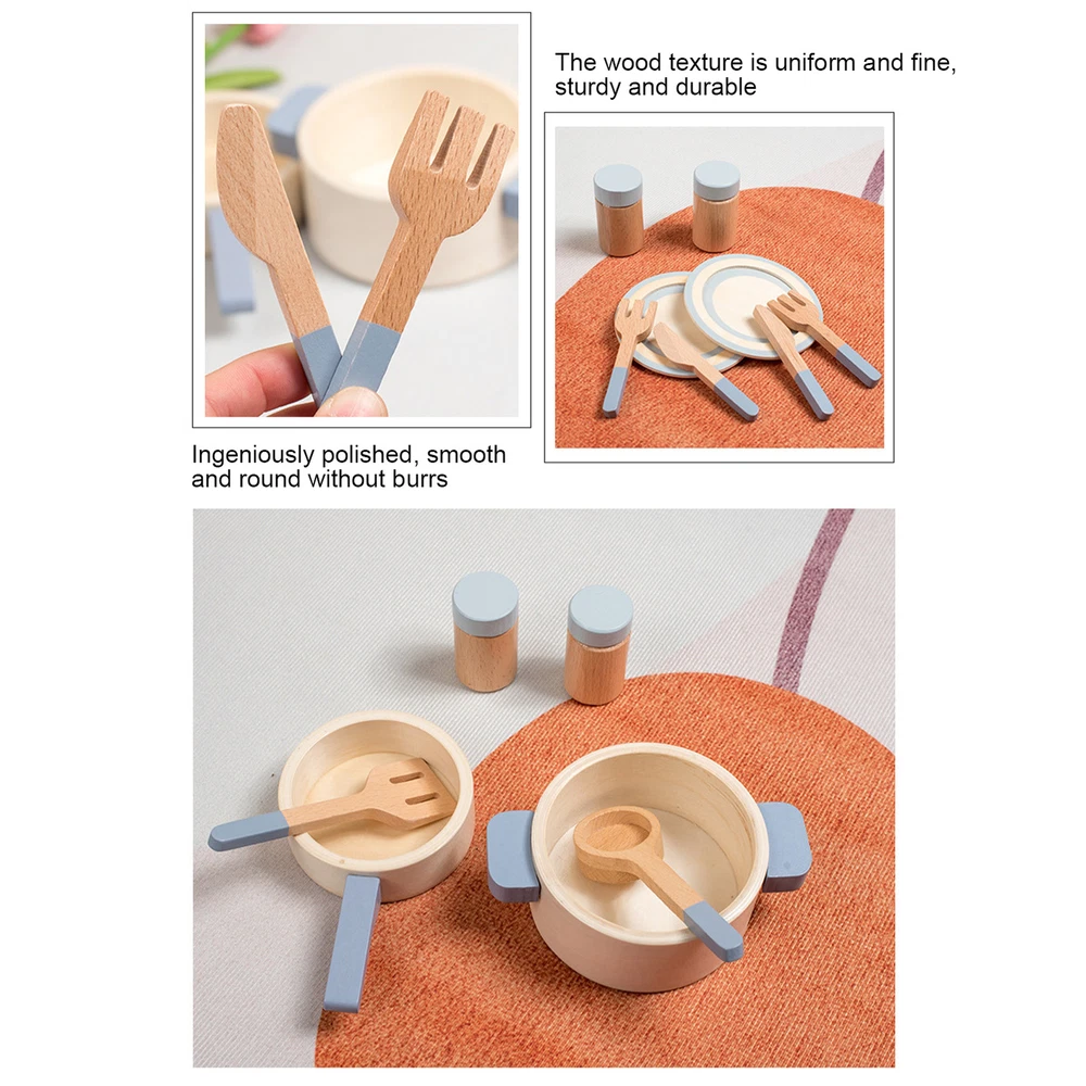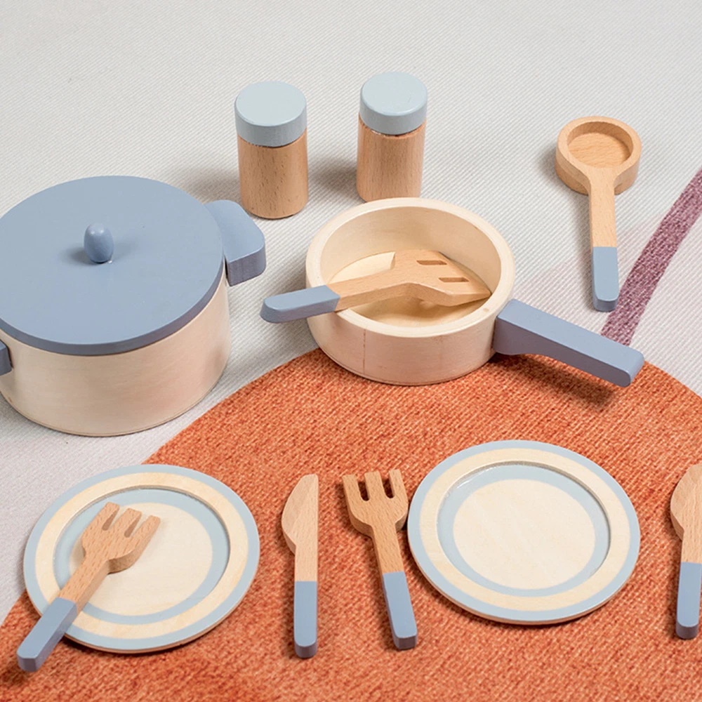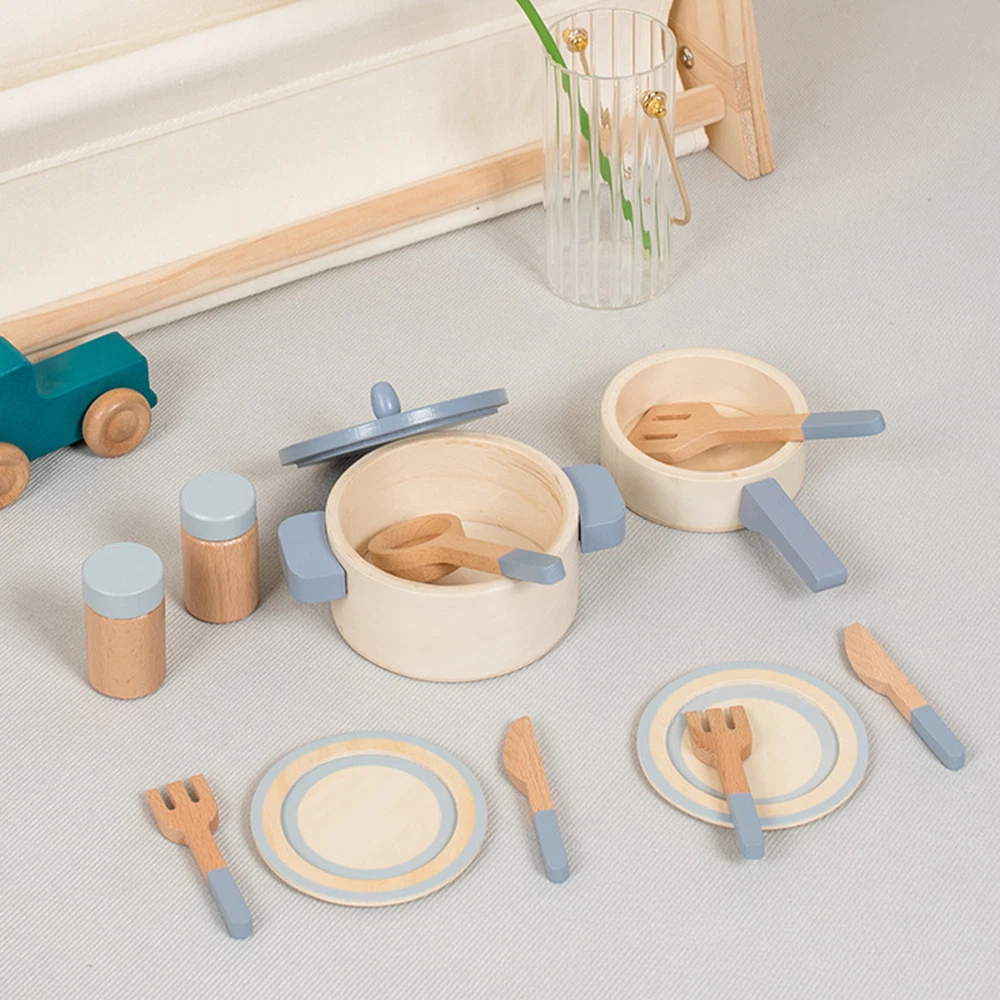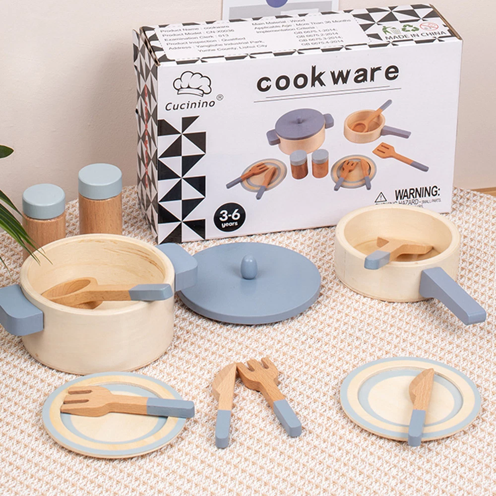 Wooden Play Kitchen Toy Set Kid Pretend Play Pot Pan Toy Gift For Kids Toddler