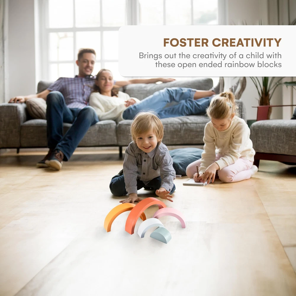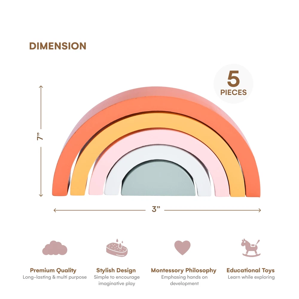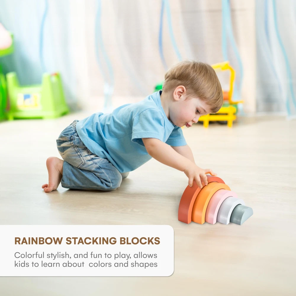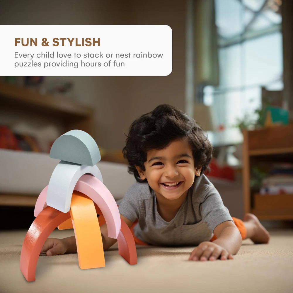 Wooden Rainbow Stacking Toy - Montessori Rainbow Nesting Puzzle - Building Bl...