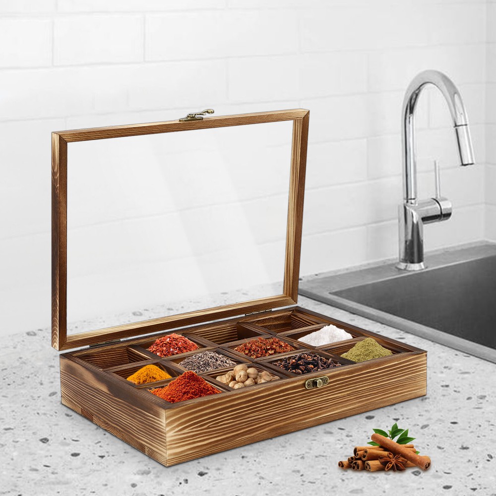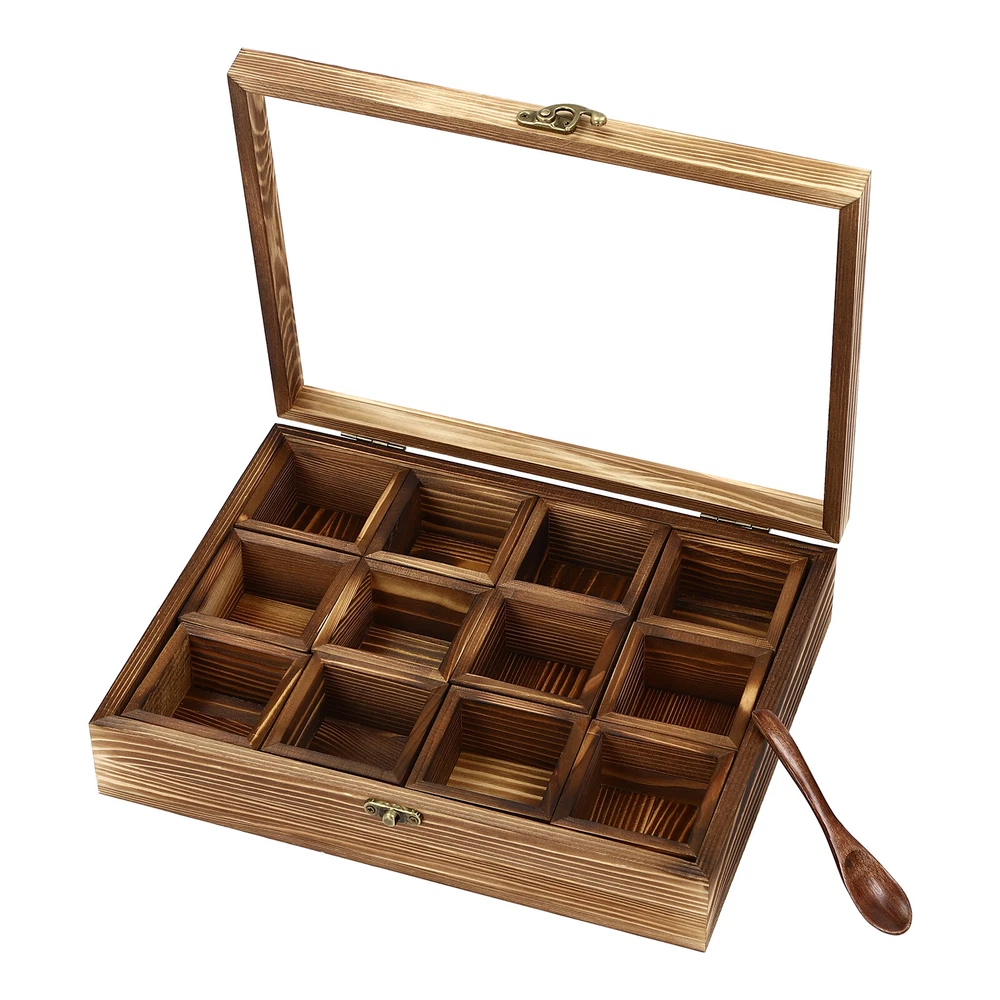 Specifications Color: Brown Material: Pine Wood, Acrylic, Hardware Process: Pine Carbonization Style: Retro Mount Type: Countertop Indoor/Outdoor Use: Indoor Assembly Required: No Style: Retro Each Compartment Capacity: About 45ml/0.01gal Number of Compartments: 12 Gross Weight: 0.5kg/1.1lbs Net Weight: 0.4kg/0.88lbs Each Compartment Size: 6.8*6.8*4cm/2.68*2.68*1.57in Product Size: 30*22.5*7cm/11.81*8.86*2.76in Package Size: 32*23*7cm/12.6*9.1*2.8in Package Included 1*Wooden Spice Box 1*Wooden Spoon Notes Please note the size of the product before purchasing. Please allow the slight color difference caused by the shooting light and 1-3cm error due to manual measurement, and make sure you do not mind before you order. Wooden Spice Box Wooden Spice Rack with 12 Containers Spice Fit Box Descri ption This 12-compartment wooden spice box is ideal for home and restaurant storage needs, keeping storage areas clean and tidy. It is made of high-quality pine wood, acrylic and hardware through the pine carbonation process, which is non-toxic and odorless , and is lightweight overall. The large capacity of 12 compartments allows you to store different kinds of spices. The matching spoon makes it easy to pick spices or teas. It is ideal for storing spoons of spices and teas, come and bring it home! Key Features Durable and Sturdy: It is made of high-quality pine wood, hardware and acrylic through a pine carbonization process, that is non-toxic and odorless , ensuring aesthetics and long-term use. Large Capacity: The 12 individual compartments allow you to store a large number of different spices or teas at once. Each compartment has enough space (2.68*2.68*1.57 in) for easy access to your items. It makes fullthe best use of space and creates a comfortable atmosphere. Freedom of Movement: The product is lightweight(0.88 lbs), so you can easily move it to the place you want it to be placed. Thoughtful Design: The square base is sturdy and won't fall over easily, and the smooth surface cares for your skin. The 12 removable compartments are easy to remove and can be used for small jewelry or as a pill box. Retro Appearance : The wood color and smooth lines present a retro style, adding beauty and vintage elements to your room. It plays a unique decorative role while using, bringing an old-world charm into your new-world home. Easy to Clean: Thanks to its smooth surface, simple construction, and removable compartments , you can wipe it clean with a damp rag. Trouble-free Installation: It doesn't need to be installed and you can use it as soon as you receive it, which is very convenient and quick. Ideal Gift: Thanks to its practicality and beauty, you can give it to your friends as a Christmas or housewarming gift! Excellent After-Sales Service: We aim to provide quality products and services. If you have any problems, please feel free to contact us. We will reply and solve the problem for you as soon as possible Details Wooden Spoon: The matching wooden spoon can be used to scoop spices or teas(not included) without having to buy extra separately. Safety Latch: It is solid and durable to effectively protect the inside items from loss or falling off. Clear Lid: It keeps your spices and other items (not included) out of the dust while allowing you to clearly see what is placed inside and display your beautiful items. Application It is ideal for storing up to 12 different spices or teas in the kitchen, living room, restaurant, teahouse, etc. With the container removed, it can also be used to store trinkets or as a pill box. Specifications Color: Brown Material: Pine Wood, Acrylic, Hardware Process: Pine Carbonization Style: Retro Mount Type: Countertop Indoor/Outdoor Use: Indoor Assembly Required: No Style: Retro Each Compartment Capacity: About 45ml/0.01gal Number of Compartments: 12 Gross Weight: 0.5kg/1.1lbs Net Weight: 0.4kg/0.88lbs Each Compartment Size: 6.8*6.8*4cm/2.68*2.68*1.57in Product Size: 30*22.5*7cm/11.81*8.86*2.76in Package Size: 32*23*7cm/12.6*9.1*2.8in Package Included 1*Wooden Spice Box 1*Wooden Spoon Notes Please note the size of the product before purchasing. Please allow the slight color difference caused by the shooting light and 1-3cm error due to manual measurement, and make sure you do not mind before you order. Payment Delivery details Terms of sales About us Contact us Payment We accept ebay payment 。 Fees such as import duties, taxes are not included in the item price or shipping costs. These charges are the buyer's responsibility. Delivery details Shipping: 2-9 working days to: USA Terms of sales We maintain high standards of excellence and strive for hundred percent customer satisfaction. Feedback is very important to us. We hope that you contact us immediately before you give neutral or negative feedback, so that we can address your concerns. It is impossible to address issues if we do not know about them! About us Your satis faction is our ultimate goal. We work hard to earn your trust and future business. Our certified technicians have tested each item before shipping. The unit comes with 1 year limited warranty on all manufacturing defects. a) If you receive a defective item, you may return it or ask for a discount. Please contact us within 14 days after you receive the package. b) What you returned must be intact and in its original packaging as re? u. Customer is responsible for shipping costs of the returned item. c) We will cover the cost of shipping back t with the shipping rate indicated in the registration page. We will send you a new unit or refund the full payment you paid. Thank you. Contact us Business Hour Business Hour: Monday To Friday: 8:30 AM to 5:00 PM (Beijing China time) Due to time zones, our reply to your questions may not be immediately. But within above working time, we will reply your email within 24 hours. If it's non-workdays, please kindly be patient and wait till Monday. Please contact us with ebay message. Please feel free to contact us if you 