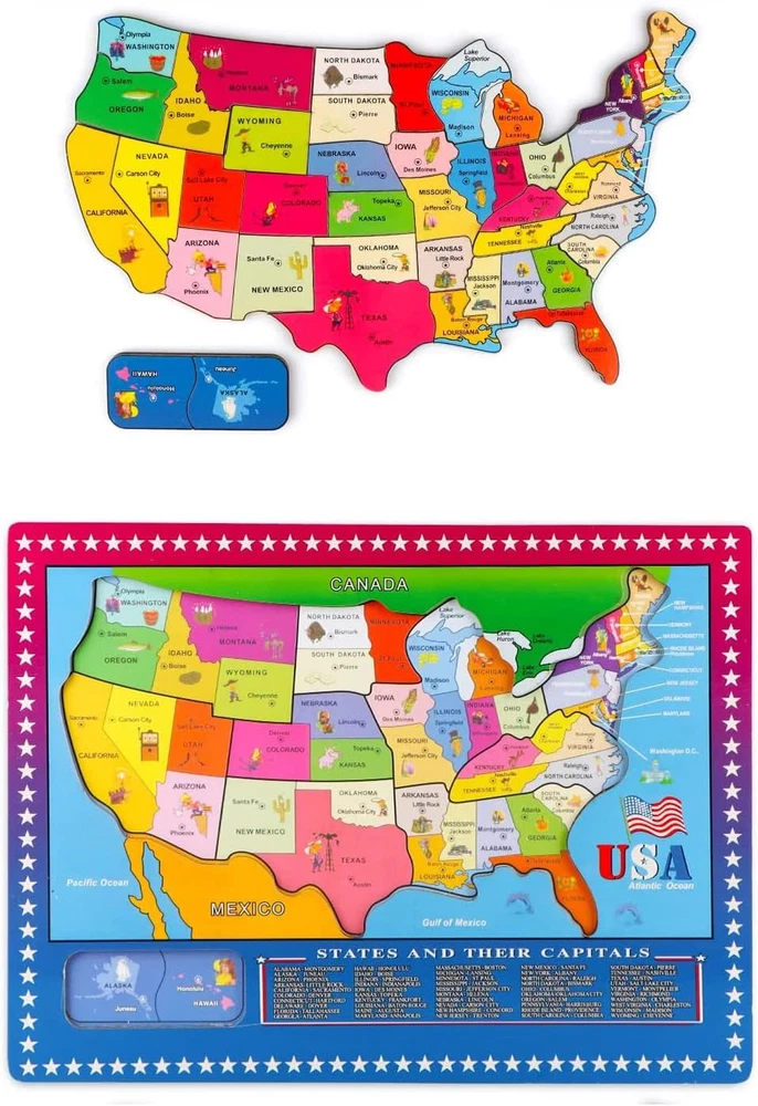 Wooden USA Map Puzzle for Kids 46 PCS United States Puzzle US Map Puzzle