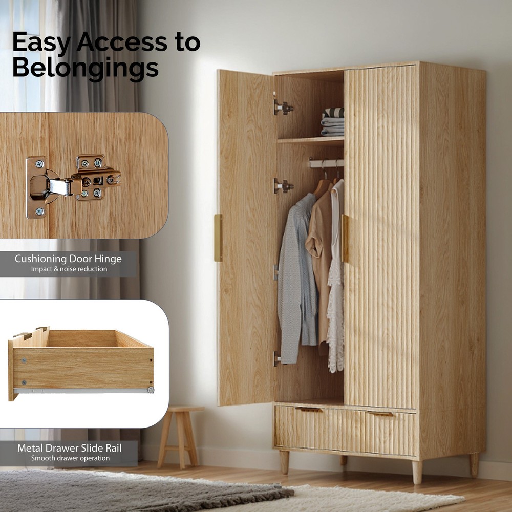 listing template VISIT OUR STORE SIGH UP FOR EMAIL Wooden Wardrobe for Hanging Clothes Closet Storage Cabinet with Hanging Rail Introductions Maximize your bedroom storage with our Farmhouse Armoire Wardrobe, a charming freestanding closet that combines rustic elegance with practical organization. Measuring 31.5"L x 19.7"W x 69.3"H, this spacious cabinet features two fluted doors, a hanging rod, shelves, and drawers to accommodate clothing, linens, and accessories. The natural wood and white two-tone finish adds farmhouse character to any space, while the compact footprint fits comfortably in bedrooms, guest rooms, or apartments. With its versatile storage options and timeless design, this armoire provides a perfect solution for homes lacking built-in closets. Features Farmhouse Charm - Fluted doors with natural/white two-tone finish Multi-Level Storage - Hanging rod + shelves + 2 drawers Space-Saving Design - Fits snugly in corners or small bedrooms Sturdy Construction - Solid wood frame with metal hinges Easy Assembly - All hardware and instructions included Freestanding Convenience - No installation required Specifications Material: Engineered wood with metal hardware Dimensions: 31.5"L x 19.7"W x 69.3"H Hanging Space: 28" rod length Drawer Dimensions: 14"W x 16"D x 6"H each Shelf Dimensions: Adjustable heights Color: Natural wood/White Package Includes 1 x Armoire with 2 Fluted doors You might like this more>> Portable Princess Castle Play House Blue Large Kids Play Tent $23.79 Double Shoe Rack Closet Shelf Storage Organizer $19.49 Oil Painting Easel Sketch Box Portable Folding $57.49 FCH L-Shaped Corner Computer Desk Home Office Desk $109.99 10 Tier Durable Storage Organizer 30 Pair Shoe Tower $18.99 24 Slots PU Leather Wrist Watch Box Display Case Organizer $16.99 Shipping Policy 1. Ship from New Jersey by Standard Int'l Shipping, and only to VERIFIED PAYPAL ADDRESS . 2.International Buyers – Please Note: a. Import duties, taxes and charges are not included in the item price or shipping charges. These charges are the buyer’s responsibility. b. Please check with your country’s customs office to determine what these additional costs will be prior to bidding/buying. 3. Please check your shipping address carefully before checkout, it can't be changed if order completed. 4. All items will be shipped to buyer's ebay address. Before you pay, please make sure your address in ebay match the address you would like us to ship to. 5. Ship within 1 business day once payment completed. We do not ship on weekends or public holidays. 6. Item normally will arrive in 10-15 business days but sometimes goes to 25-30 business days for remote area. That is depends on the freight in different countries. Return Policies 1. Refunds given only if item DOA and cannot be replaced via PAYPAL . If so, Please contact us with 5 days since you receive the item and and return to us within 30 days from the delivery date for exchange or refund. 2. If you need return, please contact our customer service representative, let us know the detailed problem and send us some pictures for confirmation. Payment Payment should be sent within 8(EIGHT) days of auction closing. Feedback If you are dissatisfied for any reason, please do not be quick to leave negative/neutral feedback. We work hard to make sure EVERY CUSTOMER 100% SATISFIED and resolve any problem for you. Work Time Work Time: Monday to Saturday About Us | Newsletter| Feedback| Contact Us Copyright © 2021 City-green. All rights reserved. 无标题文档 Wooden Wardrobe for Hanging Clothes Closet Storage Cabinet with Hanging Rail Introductions Maximize your bedroom storage with our Farmhouse Armoire Wardrobe, a charming freestanding closet that combines rustic elegance with practical organization. Measuring 31.5"L x 19.7"W x 69.3"H, this spacious cabinet features two fluted doors, a hanging rod, shelves, and drawers to accommodate clothing, linens, and accessories. The natural wood and white two-tone finish adds farmhouse character to any space, while the compact footprint fits comfortably in bedrooms, guest rooms, or apartments. With its versatile storage options and timeless design, this armoire provides a perfect solution for homes lacking built-in closets. Features Farmhouse Charm - Fluted doors with natural/white two-tone finish Multi-Level Storage - Hanging rod + shelves + 2 drawers Space-Saving Design - Fits snugly in corners or small bedrooms Sturdy Construction - Solid wood frame with metal hinges Easy Assembly - All hardware and instructions included Freestanding Convenience - No installation required Specifications Material: Engineered wood with metal hardware Dimensions: 31.5"L x 19.7"W x 69.3"H Hanging Space: 28" rod length Drawer Dimensions: 14"W x 16"D x 6"H each Shelf Dimensions: Adjustable heights Color: Natural wood/White Package Includes 1 x Armoire with 2 Fluted doors Shipping + 1. Ship worldwide from New Jersey by reliable shipping companies -- USPS, UPS, FEDEX, DHL, etc., and only to VERIFIED PAYPAL ADDRESS. Transport Delivery ETA. Package handling only takes 1 business day at our warehouse, so please make sure entering correct payment and shipping information before checking out. Once your payment is completed, we are not going to accept any more changes to your order. 2. International Buyers – Please Note: a. Import duties, taxes and charges are not included in the item price or shipping charges. These charges are the buyer's responsibility. b. Please check with your country's customs office to determine what these additional costs will be prior to bidding/buying. 3. Please check your shipping address carefully before checkout, it can't be changed if order completed. 4. Orders placed on weekend will be shipped within 2 days.Notification of shipment with tracking number will be sent to buyers. 5. Standard shipping: 2-7 business days Expedited Shipping: 2-3 business days One-day Shipping: 1 business day International shipping: Varies 6.