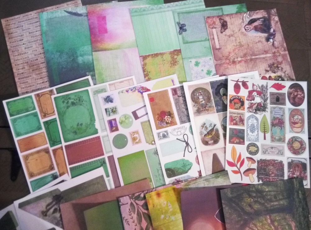 This listing is for the purple magic fairy garden journal DIY Kit you see in the picture. It is great for Junk Journal, Smash Book, collage, scrapbook, photo albums, mixed media, gifts, and all Ephemera crafts. You will receive all the pages you see in the picture for a total of 20 pages with a large variety of p purple vintage fairy magic garden themed journal pieces for you to cut, fold, and craft together for all of your diy paper craft projects! The are printed on high quality 90lb cardstock, single sided and measuring 8 1/2" X 11". This kit includes 2 pages of tags, postcards, and stamps 5 pages of predesigned journal pages for a total of 8 individual prompts 2 pages of blank cards and labels 6 pages of background paper 2 pages of vintage advertisements, Aceos, and fussy cuts 1 pages of words and quotes 2 pages of envelopes and pockets for a total of 20 pages and 100s of ephemera elements