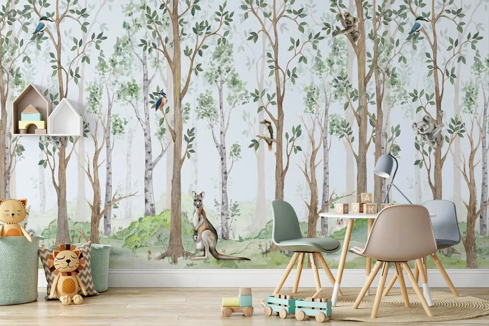 Transform any room into a serene safari with our Woodland Wallpaper featuring a Watercolor Animals pattern. This modern, green-toned mural brings a touch of the wild into your home, perfect for a nursery or any other space that needs a playful yet sophisticated update. Crafted with care, the high-quality vinyl and paper composition ensures durability and a matte or semi-glossy finish for a consistently stylish look. With its self-adhesive, peelable design, applying this wallpaper is a breeze, making it ideal for both seasoned decorators and DIY enthusiasts. The straight across style offers a seamless installation experience, and the 3D elements add depth and character to your walls. Real Home wallpaper, personalize your space and create a unique, cozy atmosphere for everyone. 🟠If your walls has special dimensions we can make custom wallpaper for you and you can contact with us for special design wallpapers🟠 Free and Fast Shipping 🚚 🔰 OUR MATERIALS 🔰 ➡ NONWOVEN Material with Smooth Surface - High Washability , Anti-Moisture - High Quality European Wallpaper - Easy to application with glue - 180 gr/m2 ➡ NONWOVEN Material with Textured Surface - High Washability , Anti-Moisture - High Quality European Wallpaper - Easy to application with glue - 240 gr/m2 ➡ PEEL AND STICK - Cleanable and Removable - Easy to apply and easy to cut - Environmentally friendly and waterproof. - Suitable for smooth surface places. - It is not suitable for dusty, uneven, rough, textured surface places. - Peel and stick ( Self Adhesived) 📌The width of each panel is around 40"📌 🍃ECOLOGO® Certification;Healthy and environmentally friendly ♻High air permeability products ✔UV Rays Resistant, HP Latex Certified 🍃Not harmful for children. P.S.❗ Before you apply, make sure the wall must be dry, light, smooth, clean and free of dust. 🧼 +0.1% difference may occur in product’s dimensions due to production. Images' color may be different with the material you choose. ⭕About the delivery process ⭕ First, please check the box contents as soon as you receive the product and receive it. In case of damaged or missing content, report directly to the courier. If you inform us as soon as possible, we can contact the cargo company. We have a chance to create a damaged or missing delivery case to the cargo company within 10-12 days, so it would be better for you to contact us within this period. ❗❗❗Buyer is responsible for all taxes and customs charges. Unfortunately, as a seller, we cannot interfere with the tax and customs process.❗