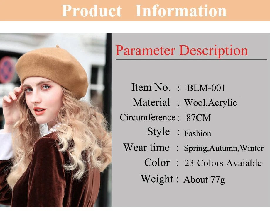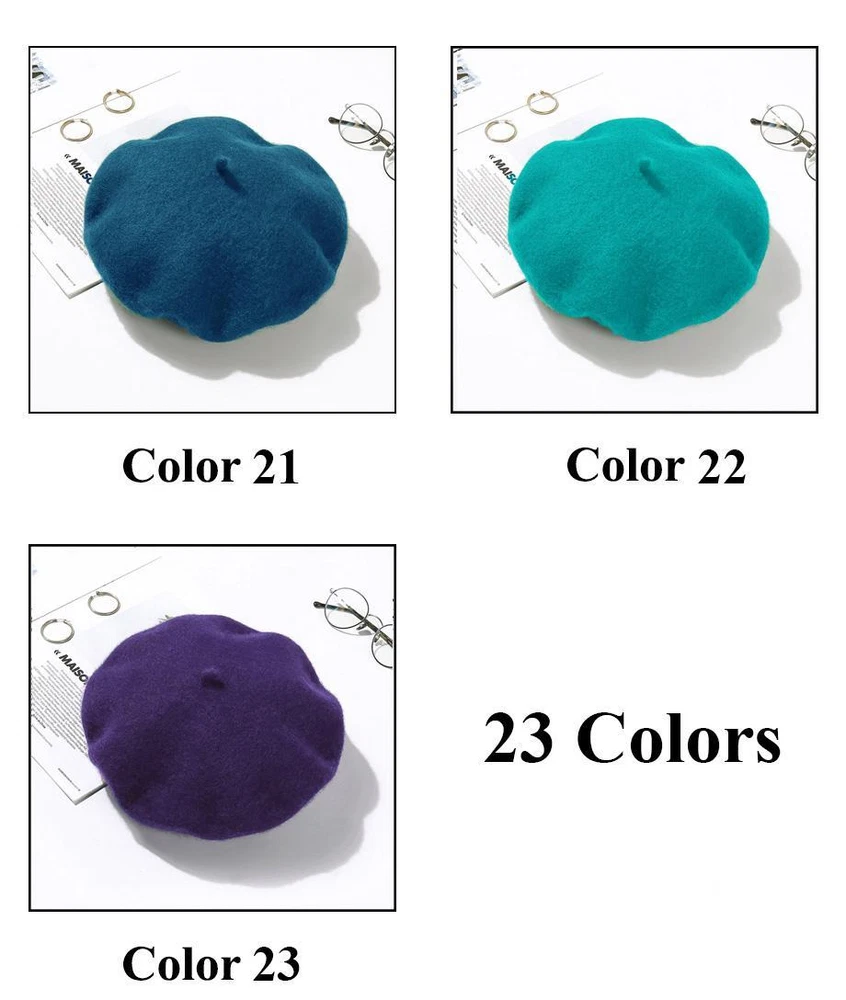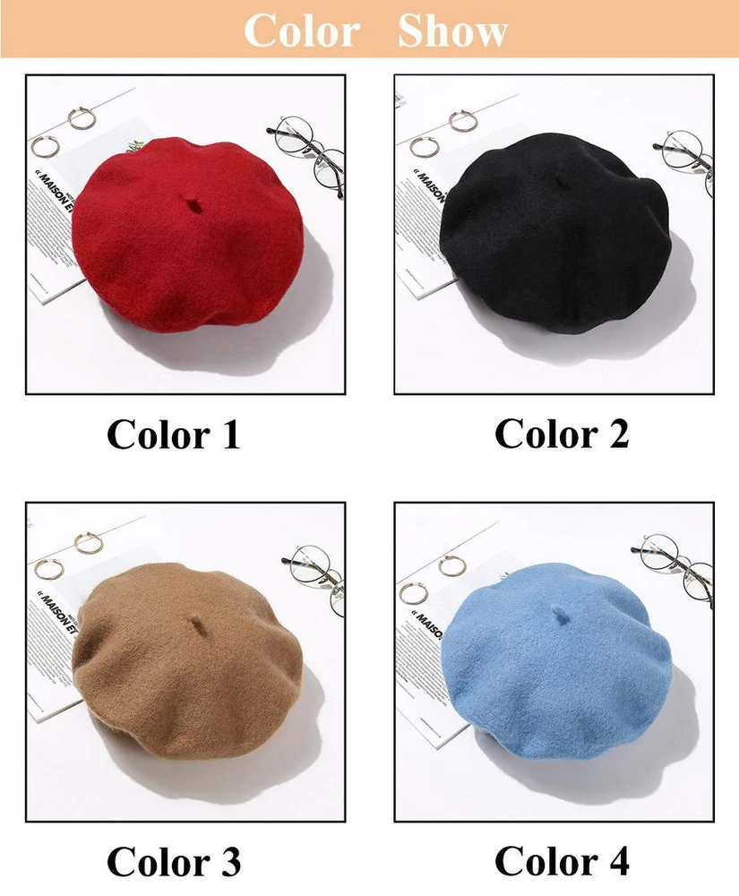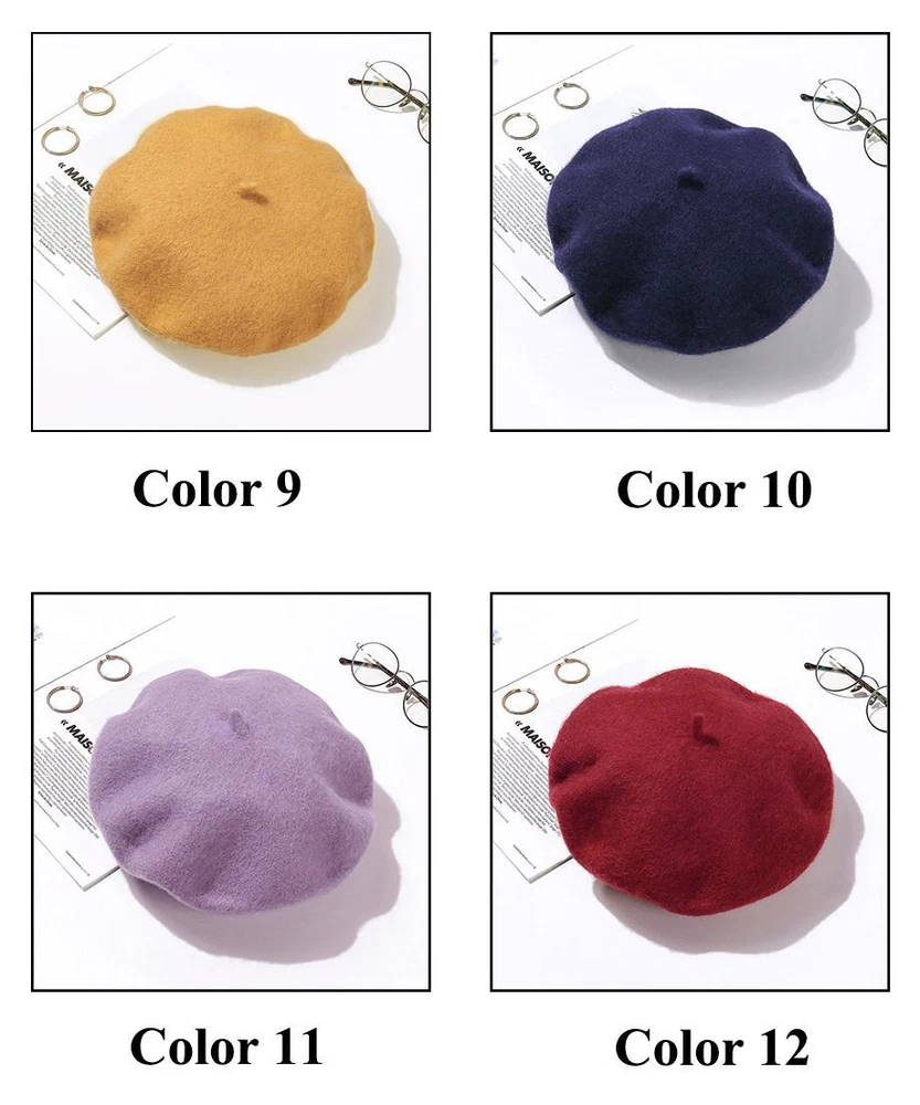 Wool Beret Hats Women Winter French Hat Girls Solid Color Fashion Autumn Winter Beret Hat For Women Warm Felt Street Berets 1,Material: Wool,Acrylic 2,Circumference: About 87cm 3,Keyword: Beret,Wool Beret Hat,Beret Hats Women,Beret Hats For Women,Cap hat, Women Beret,Beret Women,Winter Beret,Winter Hats For Women,Hats For Women,Felt Berets