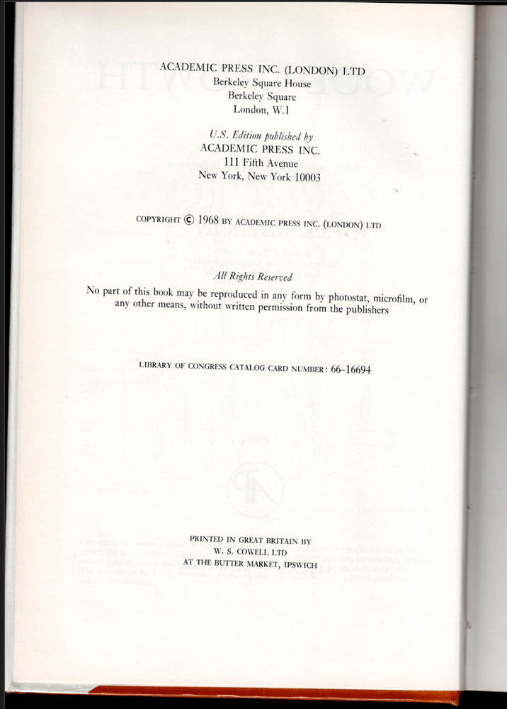 Wool Growth ; by Ryder & Stephenson - Sheep Farming / Science - Academic Press Wool Growth ; by Ryder & Stephenson - Sheep Farming / Science - Academic Press This copy is in VERY GOOD used condition overall. The price-clipped dust-jacket has been kept protected behind clear, removable film. The boards and binding are in excellent order. The pages have toned edges, they DO NOT have any names, inscriptions or marking of text. Click here to visit PATRICK ANDREAS QUALITY BOOKS Store Home Page . Listing and template services provided by inkFrog