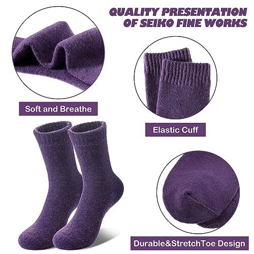 Return Policy Fast Delivery Trusted seller Wool Socks for Women Winter Warm Hiking Thick Warm Cozy Boot Crew Gift Socks 5 Pairs Product Description 【HIGH QUALITY 】- fashion women wool socks are blend of 55% Wool, 25% Cotton, 15% Polyester, 5% Spandex.Good for fall and winter wear. These wool crew socks will keep your feet warm and comfortable all winter long. 【SIZE & CARE 】- These women,teen girls socks come is a standard US SIZE that fit US womens shoe sizes from US 5 - 10, so everyone can enjoy these colorful, fashion warm hiking socks. Please do not iron them and suggesting wash them by hand, Great quality socks require the proper care! 【COMFORT BOOT SOCKS】- Womens crew socks are suit for hiking, walking, sleeping or during any outdoor activities. These thick boot socks are elastic and perfectly make it suitable for your feet. 【MULTI-FUNCTION】- women wool thermal socks are suitable for different situation, you can wear them as office, school, hiking, outdoor, sport, indoor, home, work, heavy duty socks, dress socks, christmas socks, boot socks for women in Spring, fall, winter season or in any cold weather or snow areas. 【EXCELLENT GIFT CHOICE】- Womens wool socks can as stocking stuffers gifts for women, mom, grandma, wife, sister, girlfriend. The unique style and colors of these socks can be matched with any clothes you choose to wear today! Shipping Returns Payment Shipping Shipping is FREE to all addresses other than APO/PO boxes in the lower 48 states. All our stock ships from US-based warehouses. Shipped via USPS or UPS (depending on location and package weight) Unless stated otherwise, all orders will ship within 24-72 hours of your payment being processed. Check our feedback to see the great reviews of FAST shipping we offer. Returns Seller does not accept returns Payment We currently accept payment via eBay managed payments only. Once payment is cleared, we will dispatch your shipment within 1-3 business days. Please refer to the "Shipping" tab for more information regarding shipping speed to your destination.