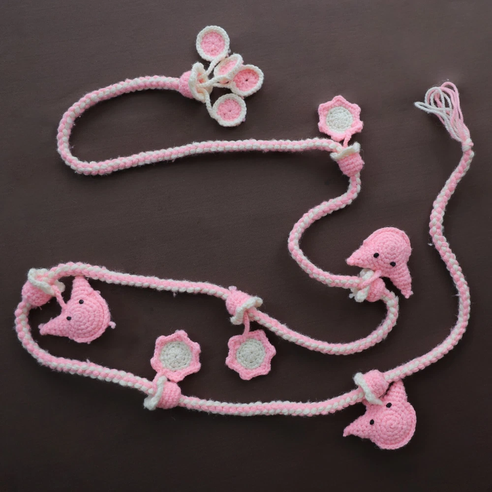 Woollen Baby Cradle Decorative Lace and Handmade Rope Gift - Pink