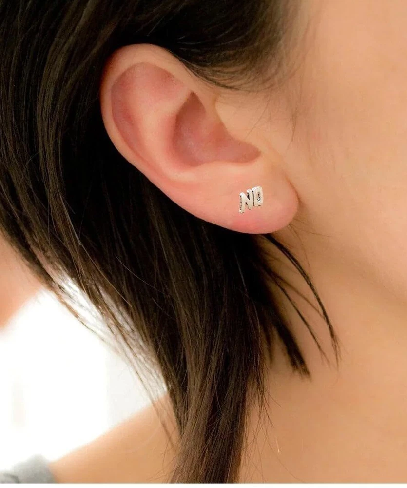 Word Script Earring Letter Studs Alphabet Earring 925 Silver Gift (No Word)