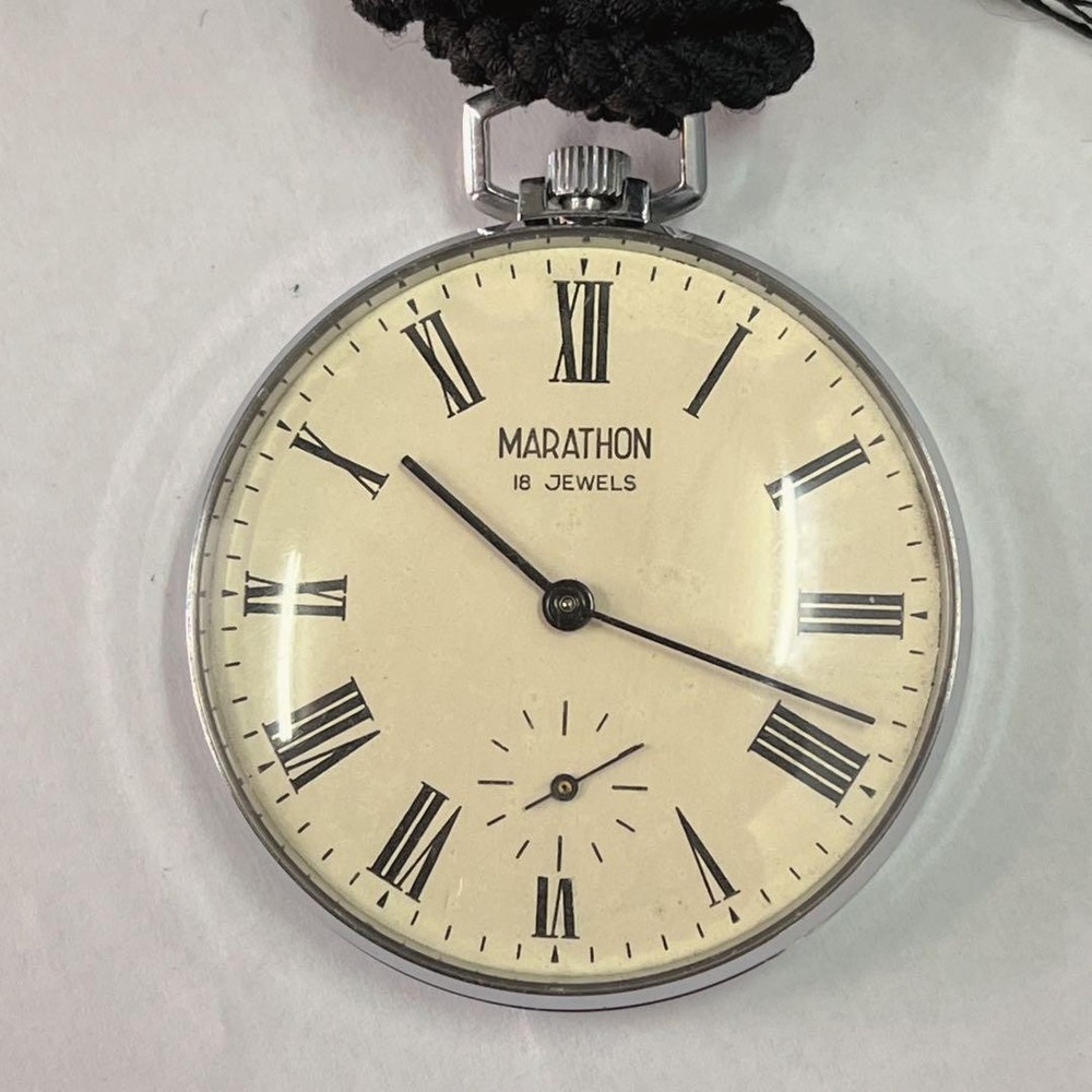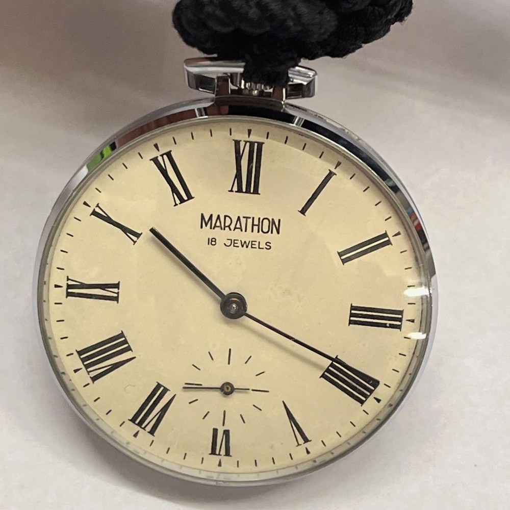 Working Product Marathon 18 Jewels Hand-Wound Pocket Watch Cream Color