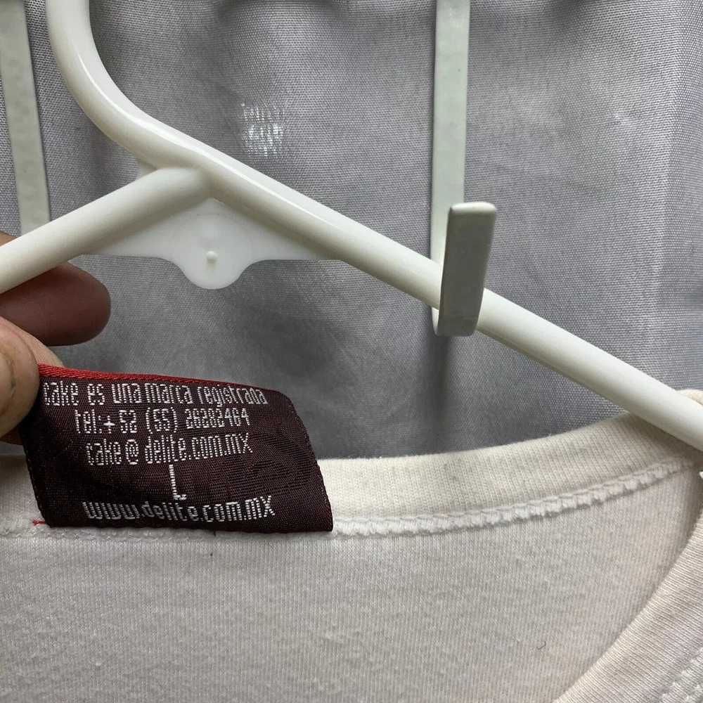 Features: Adjustable, All Seasons, Breathable, Double-Sided, Full Zip, Hooded, Lightweight, Limited Edition, Preshrunk, Quick Dry, Stretch Country/Region of Manufacture: United States Fit: Regular Size Type: Regular Theme: 90s Pattern: Graphic Print Season: Fall, Spring, Summer, Winter Character: Blue Personalize: No Year Manufactured: 1990-1999 Accents: Button, Embroidered, Logo Character Family: Free!, Friends Brand: Fruit of the Loom Type: T-Shirt Vintage: Yes Department: Men Material: Cotton, Cotton Blend Fabric Type: Knit Color: White Sleeve Length: Short Sleeve Size: L Handmade: Yes Neckline: Crew Neck