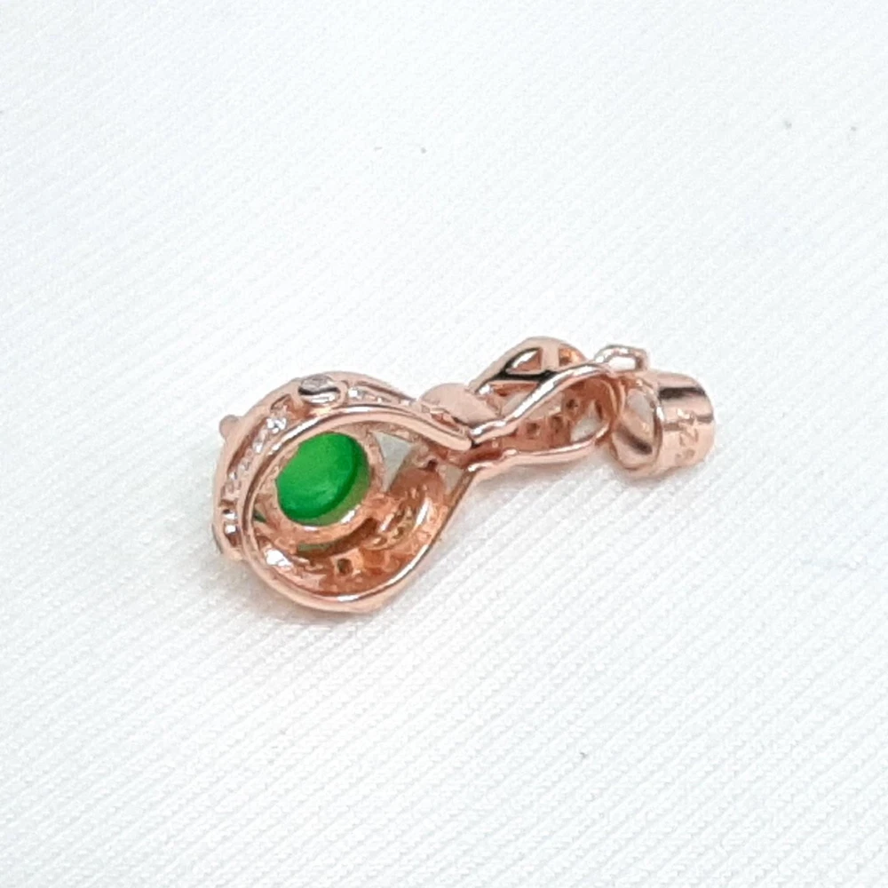 World Class .60ctw Green Opal & White Sapphire 14K Rose Gold 925 Silver Pendant