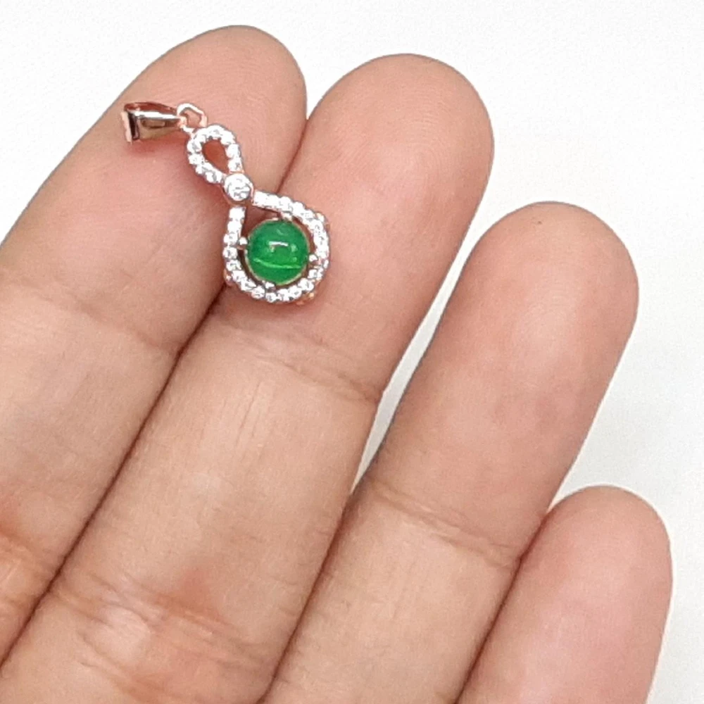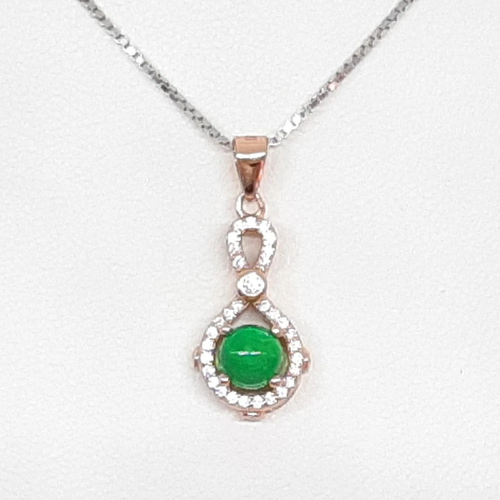 Main Stone Shape: Cabochon Style: Pendant Secondary Stone: Sapphire Metal: Rose Gold Plated Main Stone Color: Green Metal Purity: 925 Base Metal: Sterling Silver Total Carat Weight: .60ctw Type: Pendant Brand: EJM Main Stone: Opal